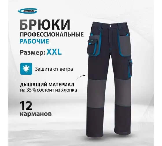 Брюки профессиональные рабочие GROSS 97% хлопок 3% спандекс, XXL 90440