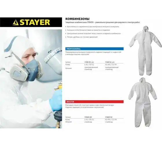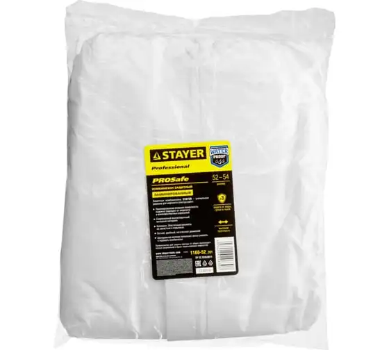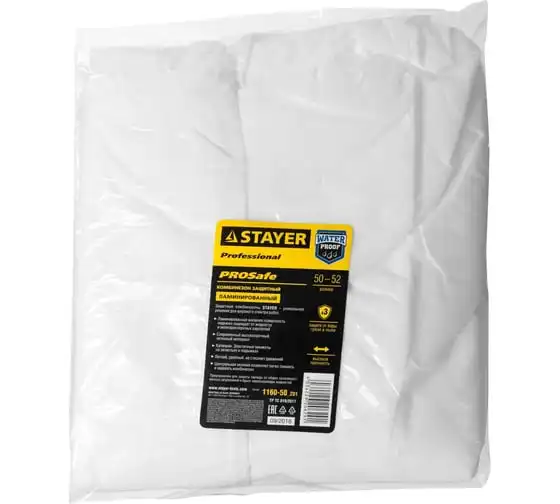 Защитный комбинезон STAYER PROFESSIONAL из ламинированного спанбонда, размер 52-54 1160-52_z01