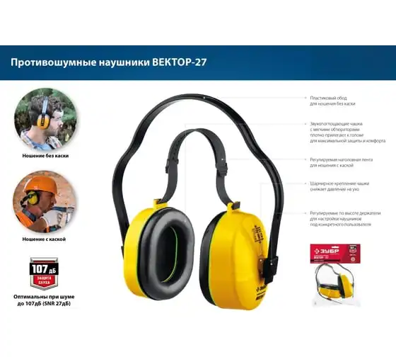 Противошумные наушники ЗУБР Вектор-27 защита до 107 дБ 11372