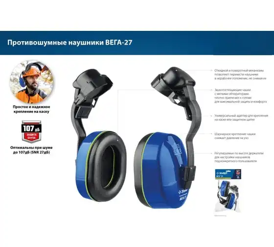 Противошумные наушники с креплением на каску ЗУБР вега-27 11371