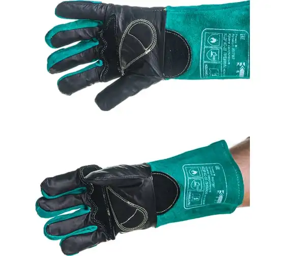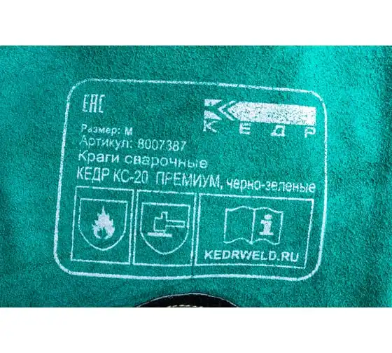 Сварочные краги Кедр КС-20 ПРЕМИУМ черно-зеленые, р-р M 8007387