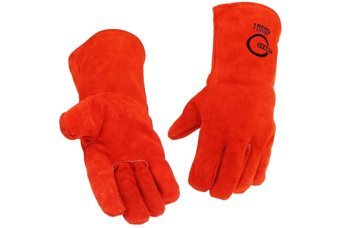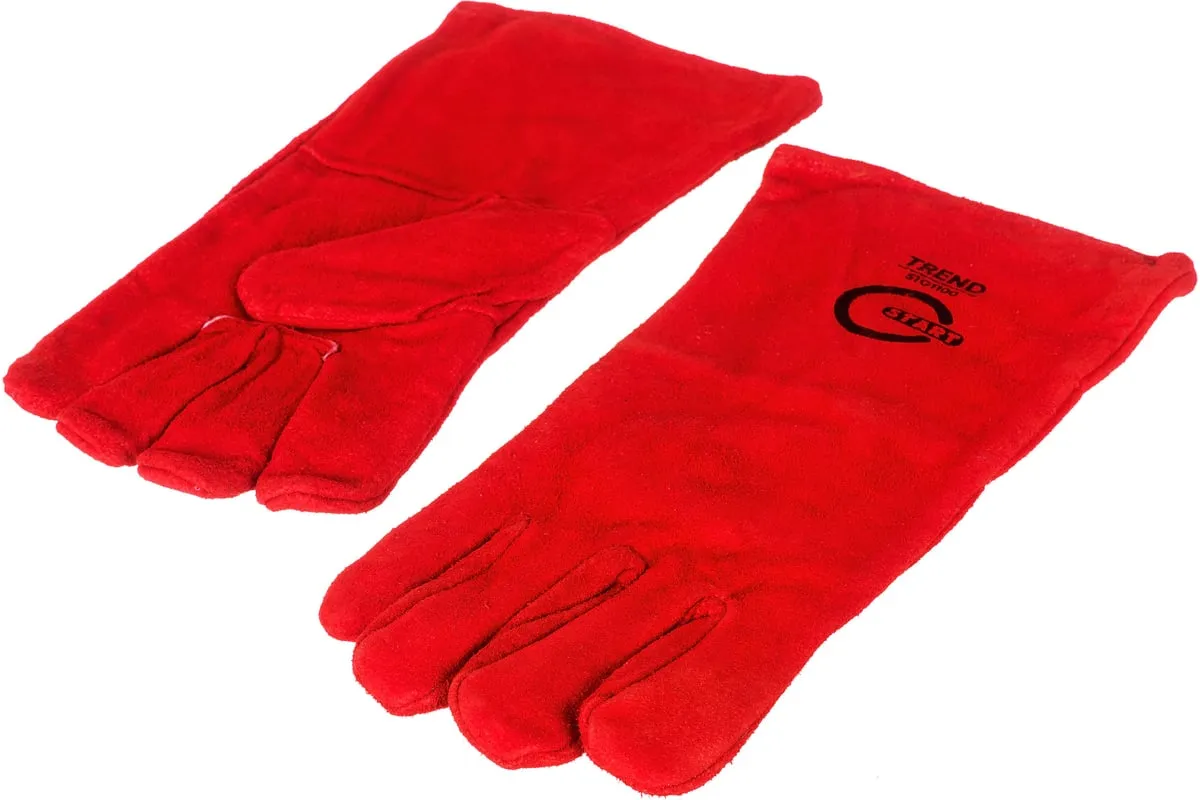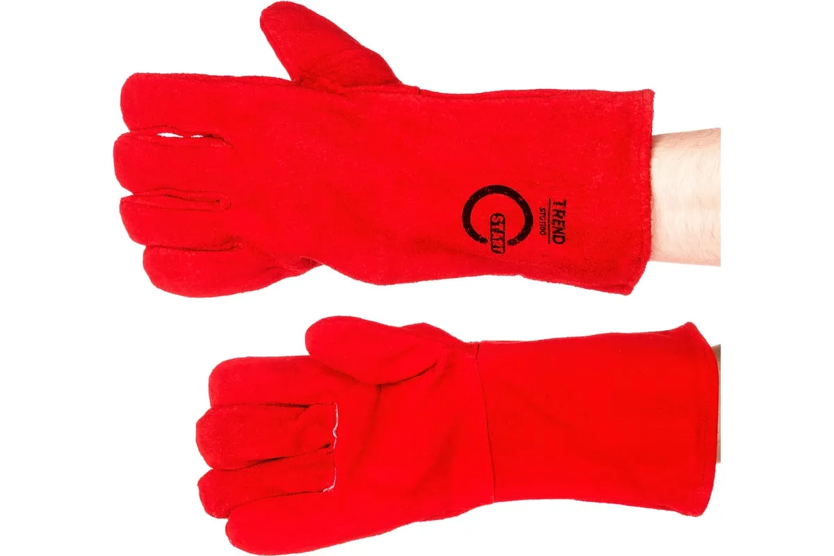 Краги сварщика спилковые START Trend STG1100 для защиты от механических воздействий и повышенных температур. Перчатки пятипалые с подкладкой из флиса и брезента, длина 350 мм (+10/-5 мм) , используется специальная упрочненная нить.