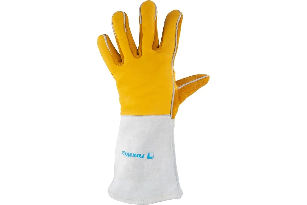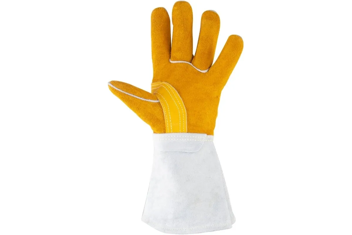 Спилковые краги прошиты прочными и огнеупорными кевларовыми нитками.