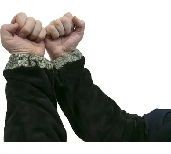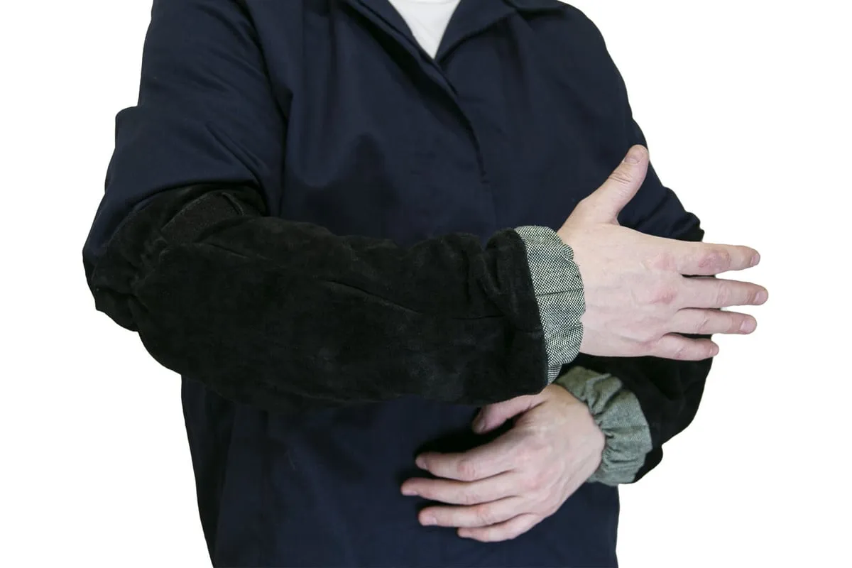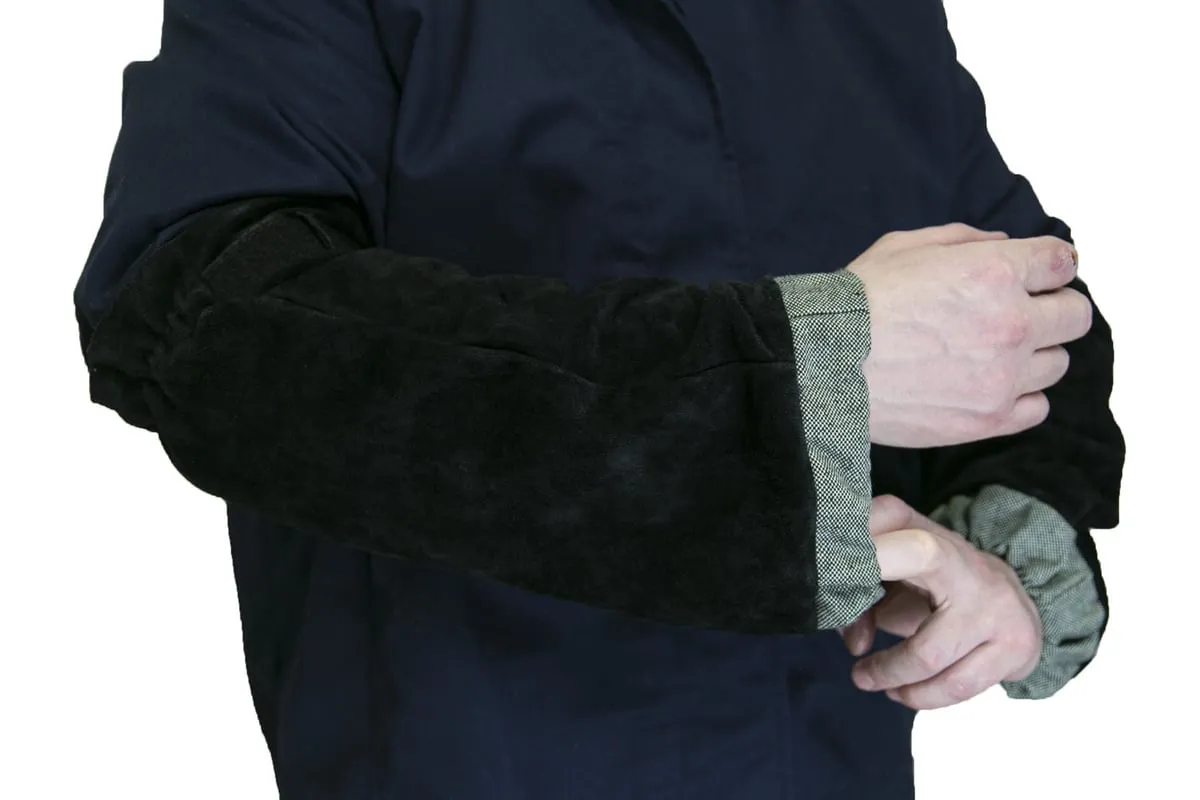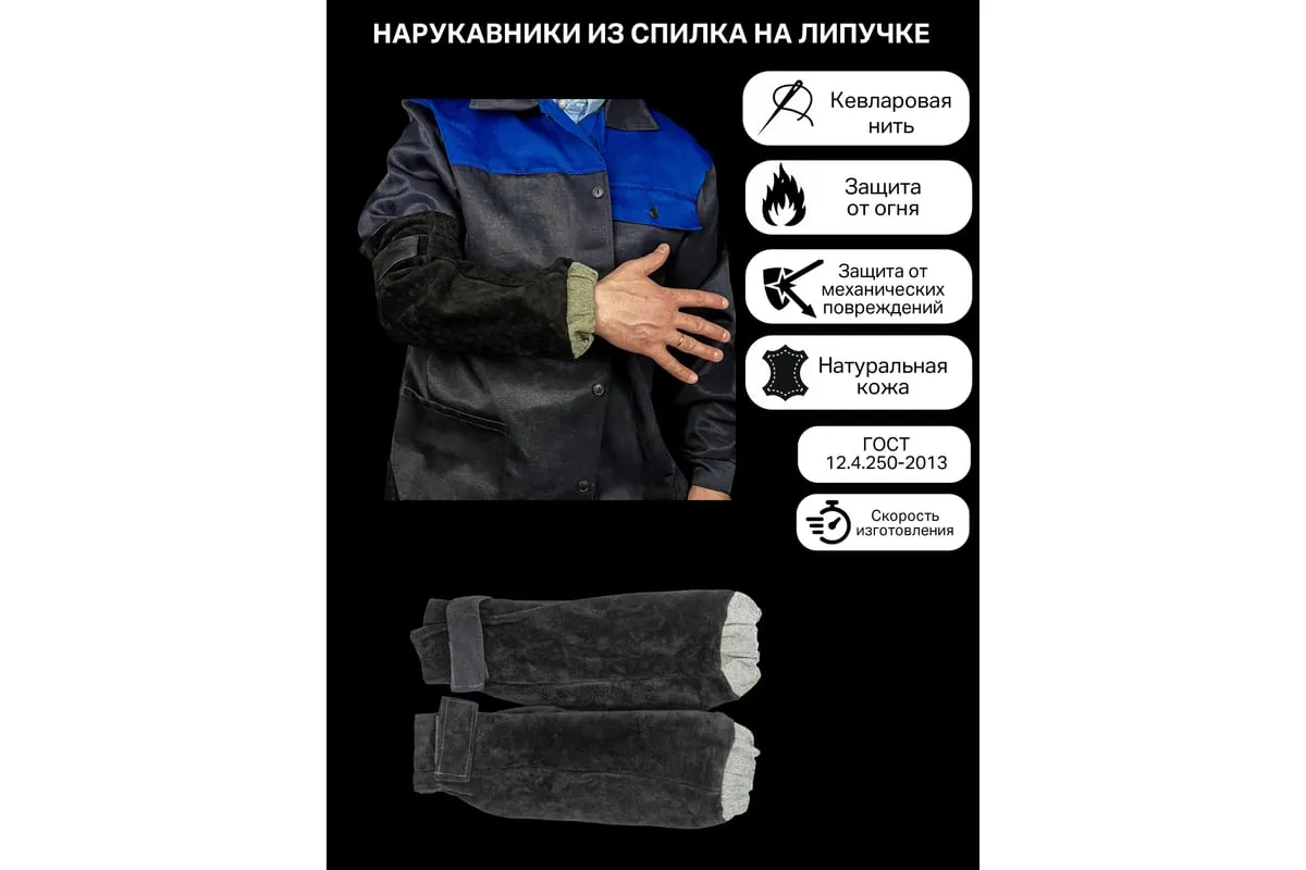 Спилковый нарукавник КСМ на липучке РНСУЛ-01 обеспечивают плотное прилегание элемента спецодежды к руке сварного.
