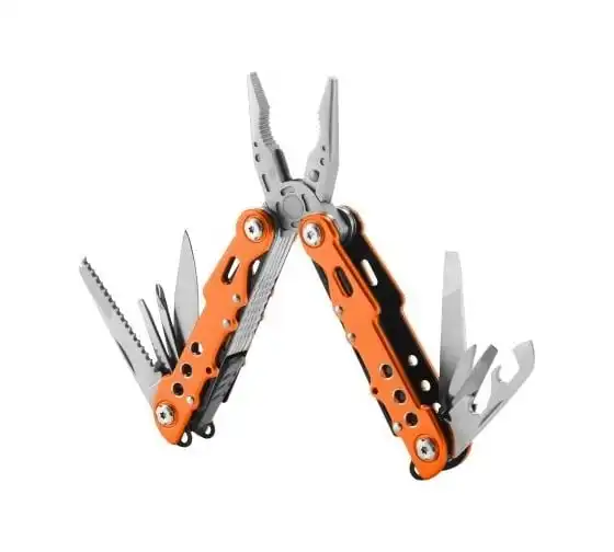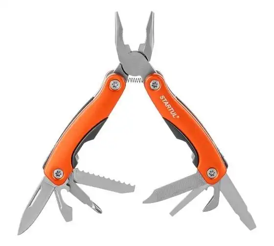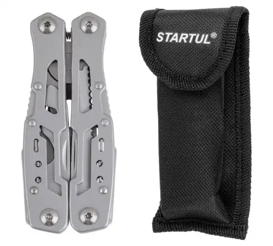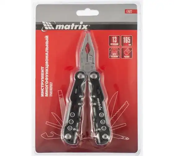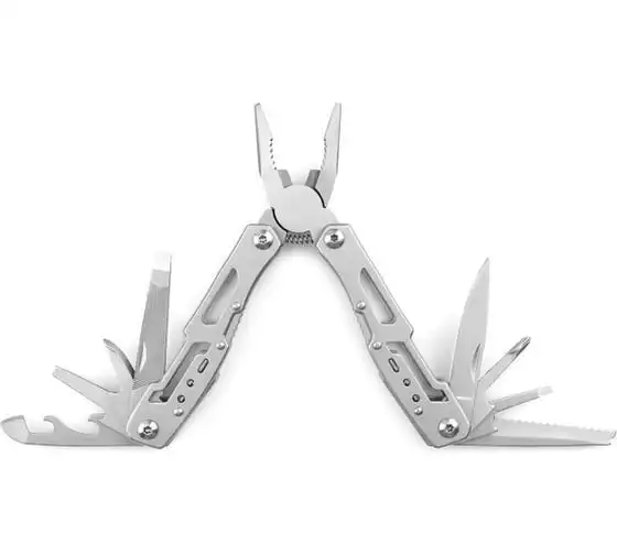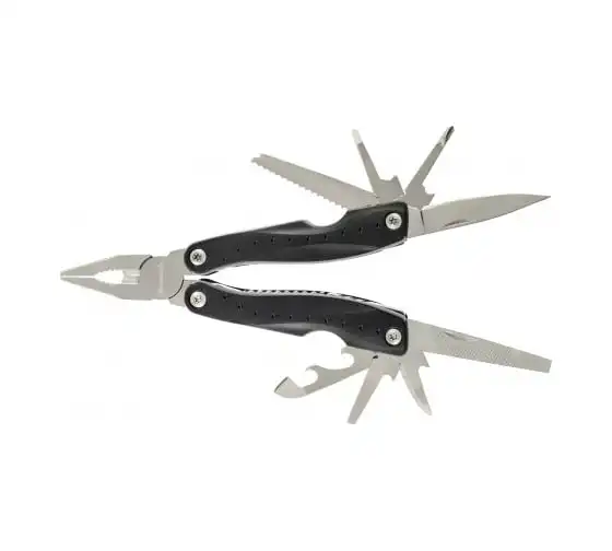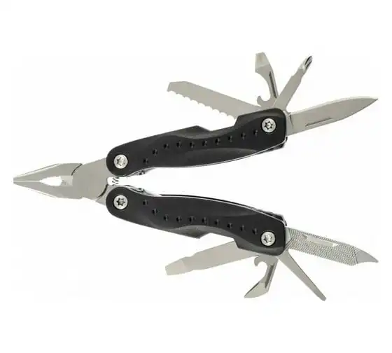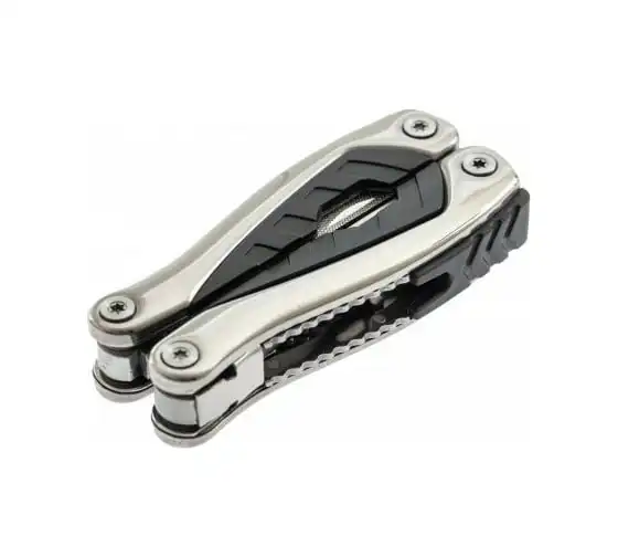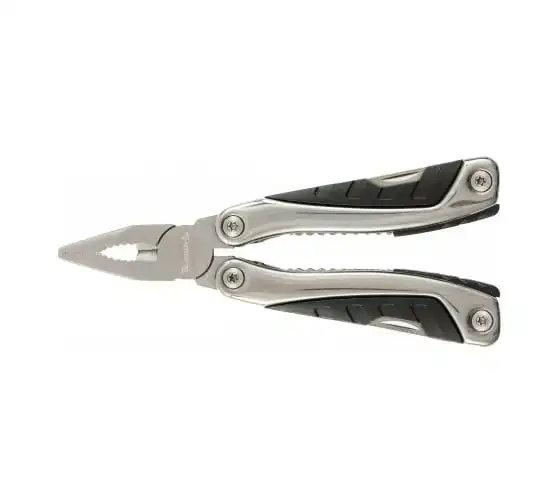 • Функции: длинногубцы, захват для удерживания полукруглых предметов, кусачки, нож, малый нож, консервный нож, пилка для ногтей двусторонняя, пила, открывалка дл