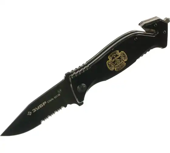 Складной нож, серрейтор. заточка, наконечник для стекол,резак,200мм/лезвие 90мм Зубр "ЭКСПЕРТ" СПАСАТЕЛЬ 47707_z01