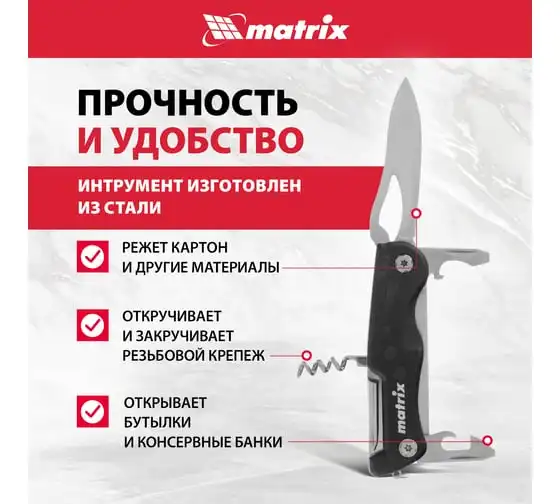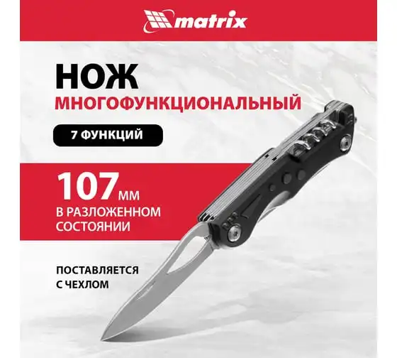Многофункциональный нож MATRIX, 7 функций, в чехле, 107 мм 17624