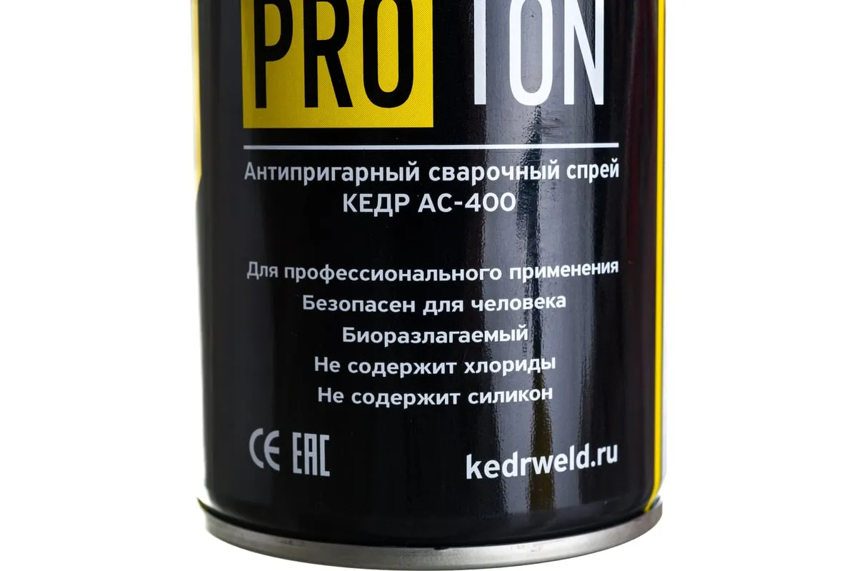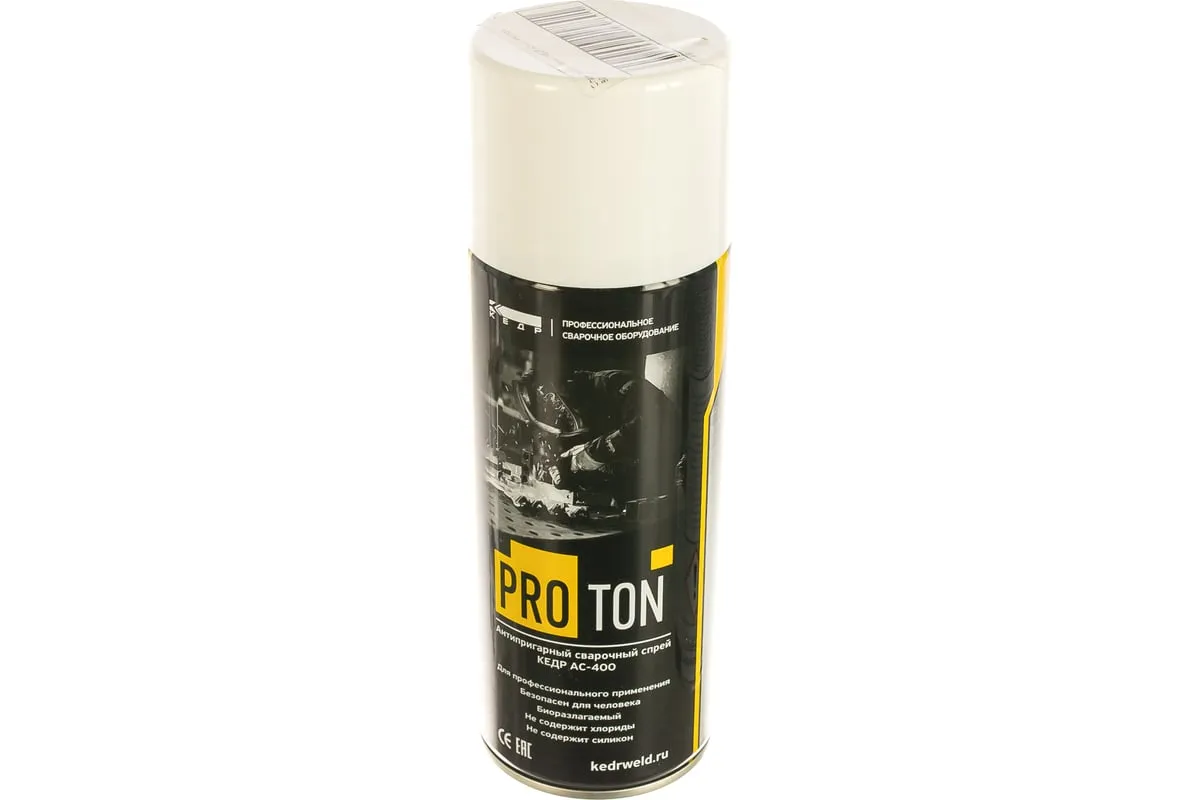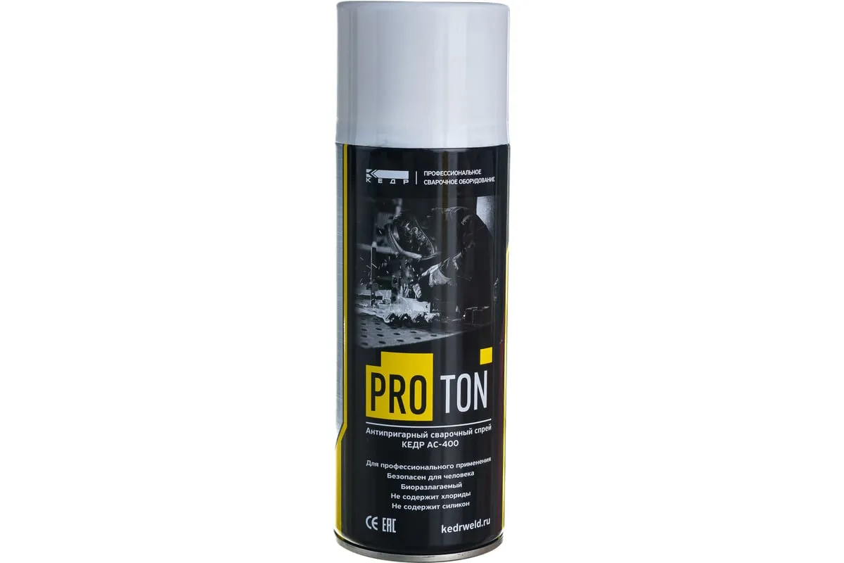 Спрей антипригарный сварочный АС-400 PROTON Кедр 8011397 используется во время сварочных работ, позволяет избежать налипание брызг. Изготовлен на основе биоразлагаемых синтетических полимеров, защищает детали сварочной горелки и продлевает их срок службы. Обработка спреем сокращает время очистки изделия после сварки, снижает стоимость работ.