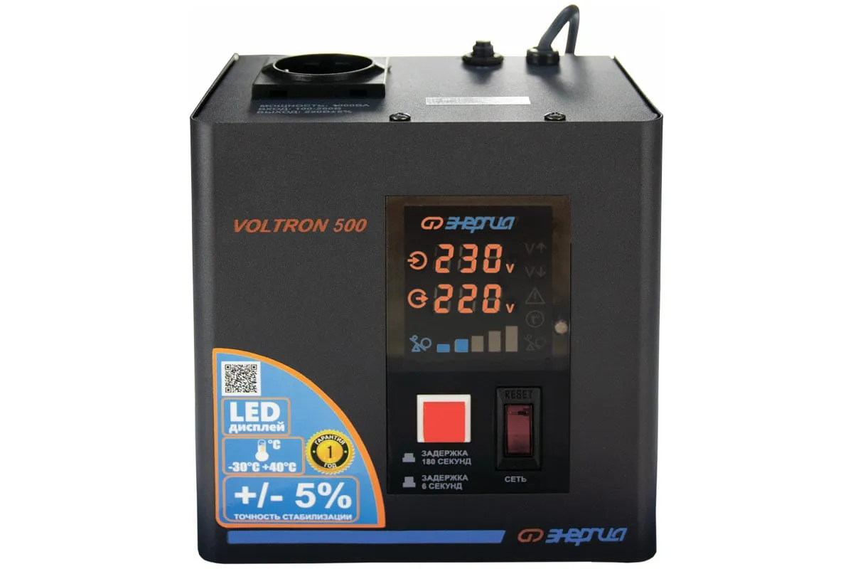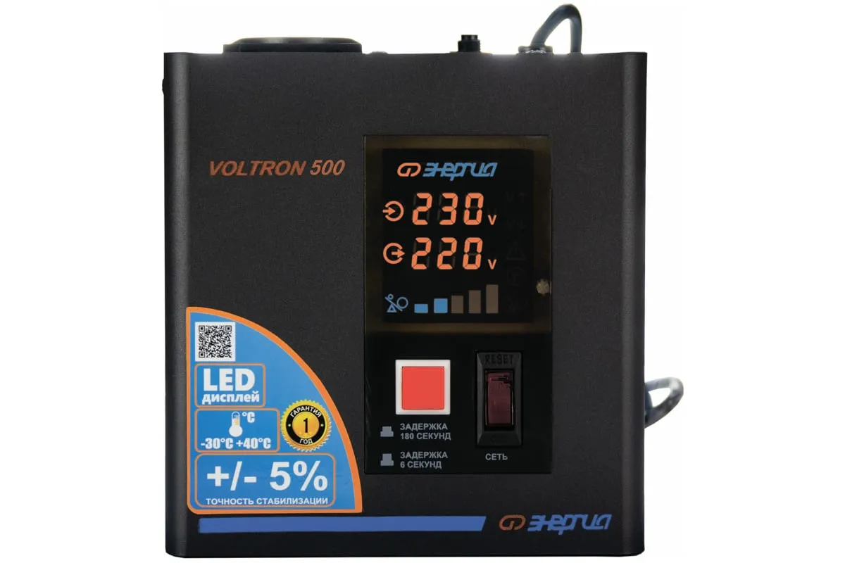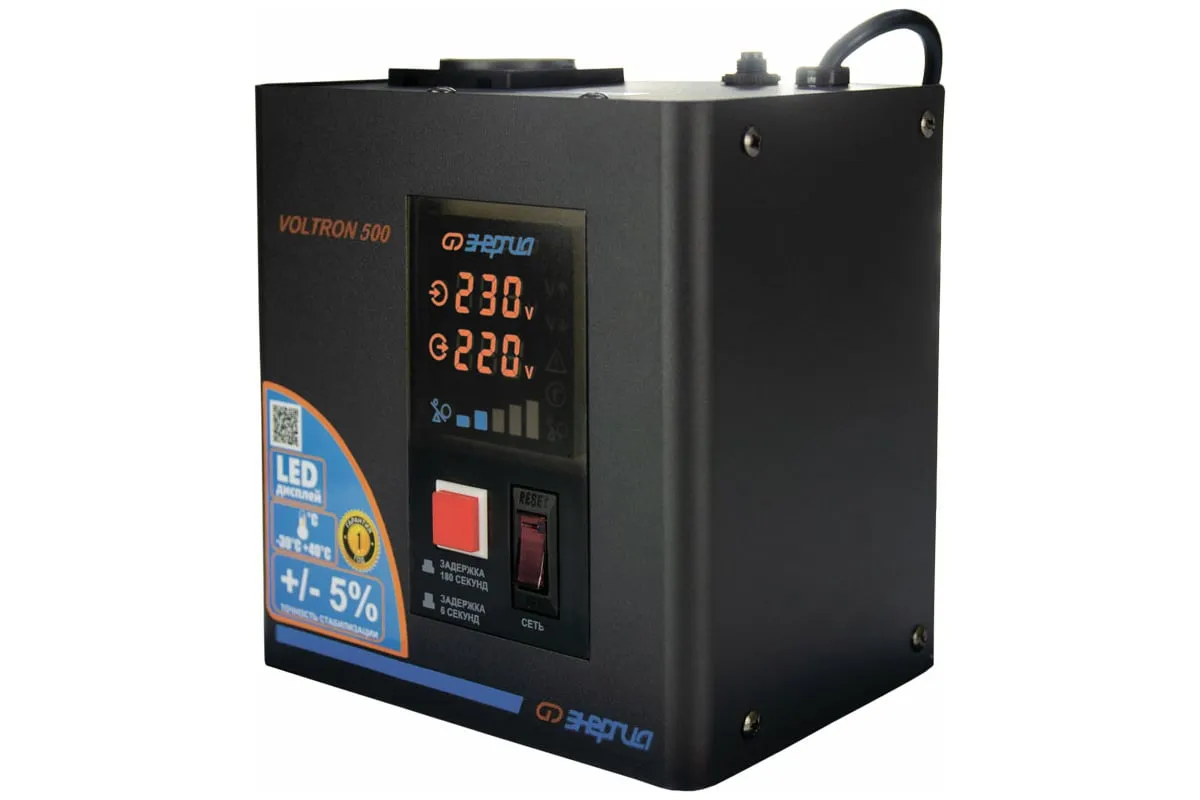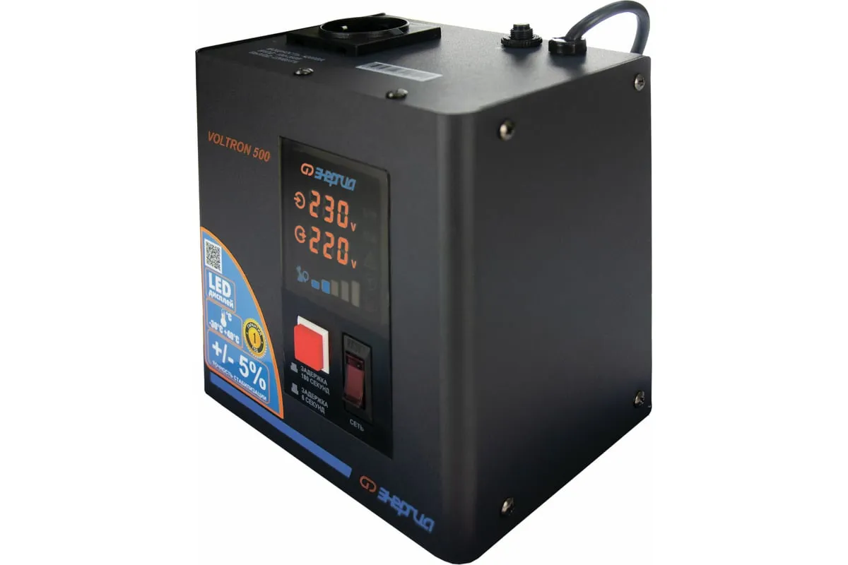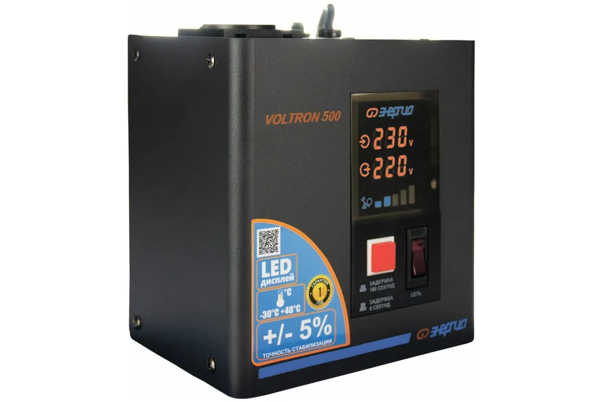 Стабилизатор Энергия VOLTRON - 500 Е0101-0153 относится к оборудованию релейного типа, который используется для защиты от скачков напряжения различных бытовых приборов - котлов, компьютеров, телевизоров и пр. Устройство корректирует вольтаж с погрешностью до 5%. Отличается простотой эксплуатации, надёжностью и долговечностью, а также устойчивостью к низким и высоким температурам.