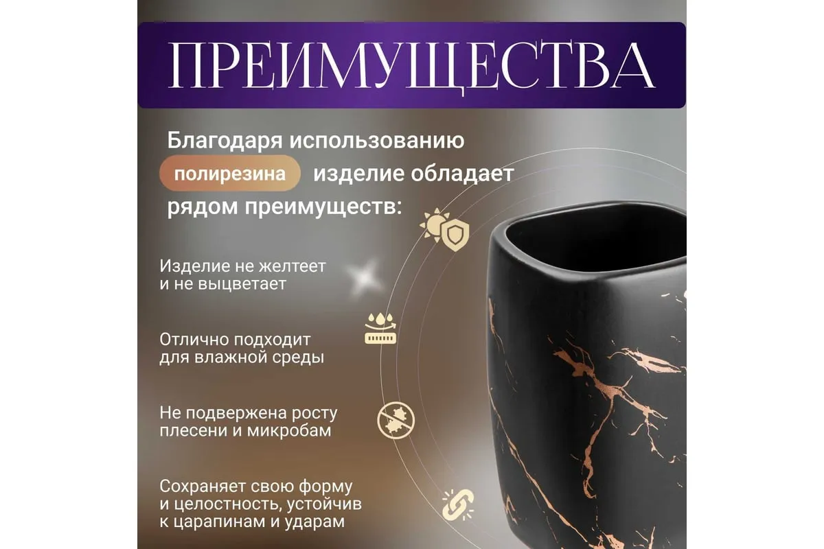 Стильный и в тоже время качественный стакан для зубных щёток и пасты идеально впишется в ванную комнату. Также стакан для зубных щеток отличается высоким качеством материала - керамика. Это простота и уют одновременно.