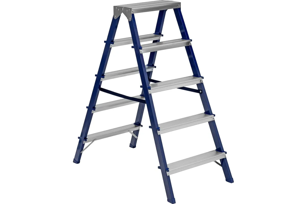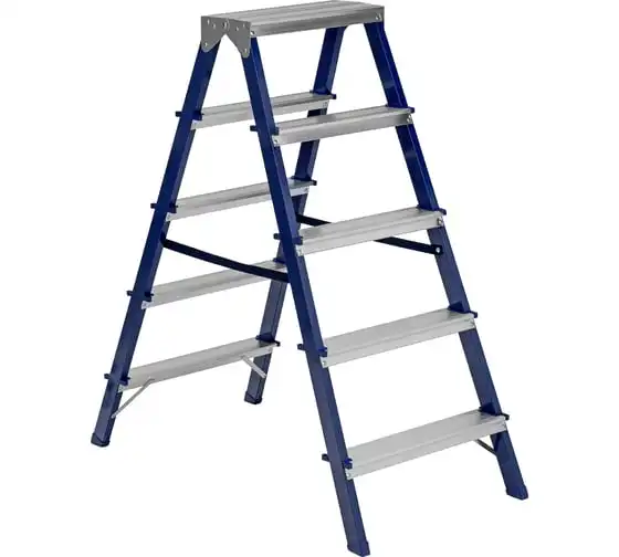 Стальная двусторонняя стремянка СИБРТЕХ 5 ступеней 97935 служит для организации работ на небольшой высоте. Сфера использование широка и многогранна. Подходит для дома, сада, гаража, а так же коммунальной и строительной деятельности. При изготовлении использовался стальной профиль с высококачественным эмалевым покрытием. Этогарантирует изделию коррозионную стойкость и прочность. Изделие оснащено пластиковыми наконечниками, которыеисключают скольжения по поверхности и не повреждают покрытие пола.