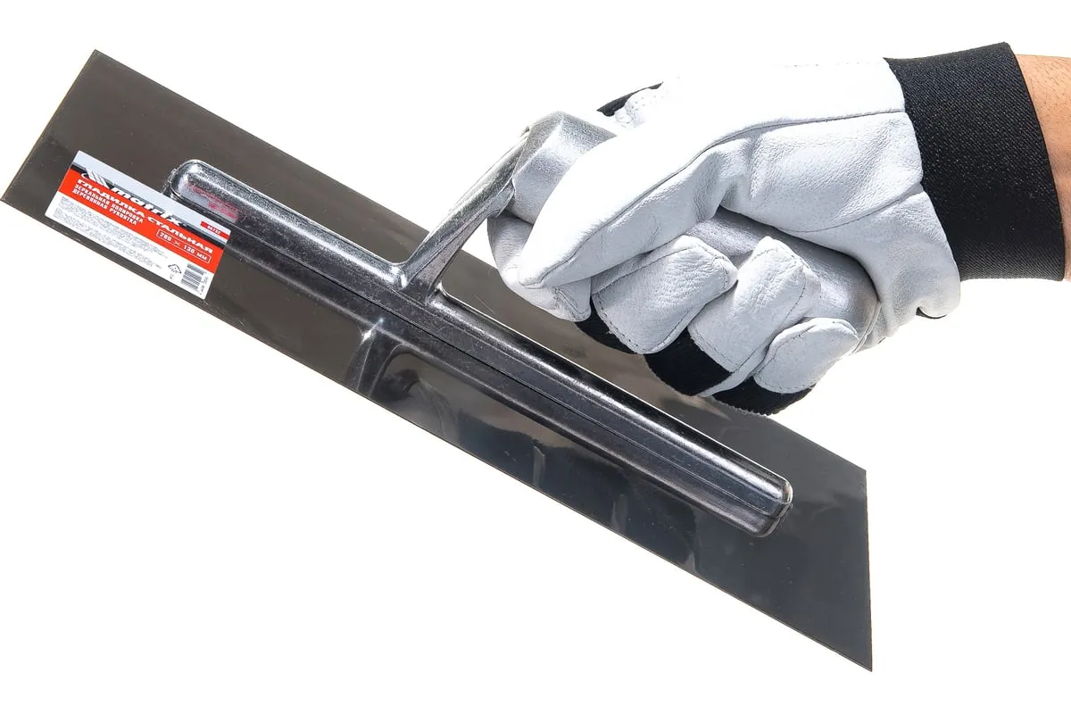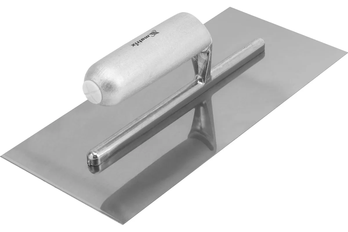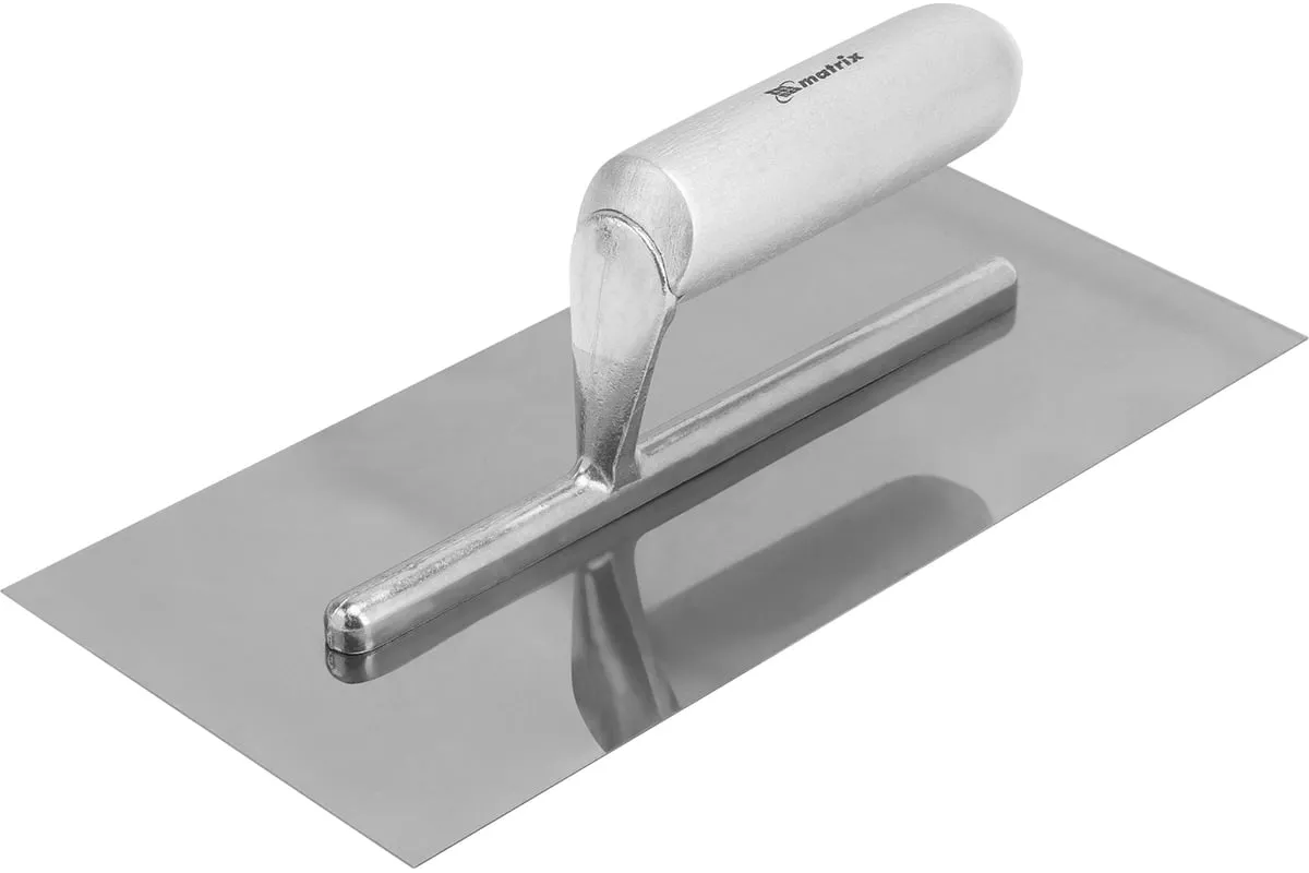 Стальная гладилка Matrix 86732 размером 280 x 130 мм, с зеркальной полировкой и деревянной ручкой, используется для нанесения клеевых составов, штукатурки и других строительных смесей. Позволяет создать идеально ровное покрытие.