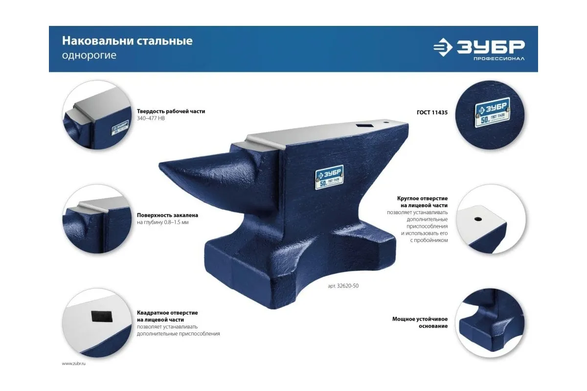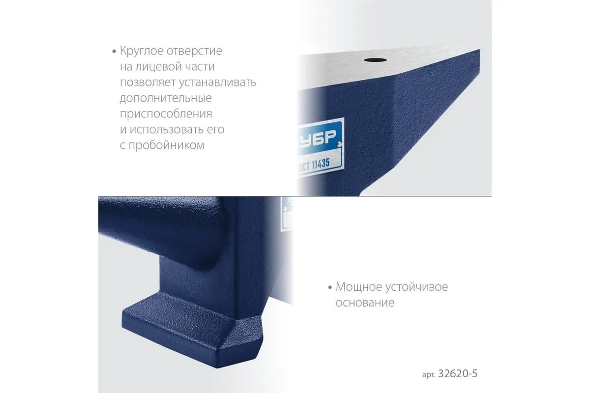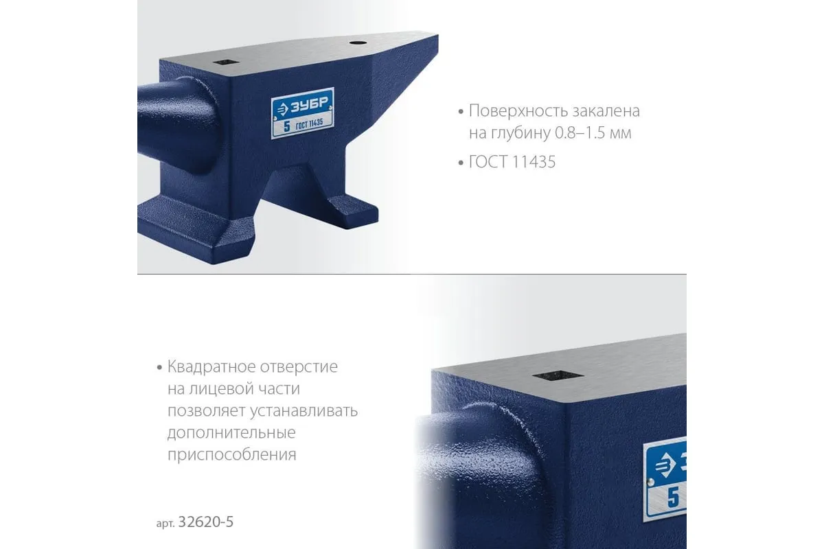 Изготовлена из стали С35Л Поверхность закалена на глубину 0.8-1.5 мм ГОСТ 11435 Квадратное отверстие на лицевой части позволяет устанавливать дополнительные приспособления Круглое отверстие на лицевой части позволяет использовать его с пробойником Мощное устойчивое основание