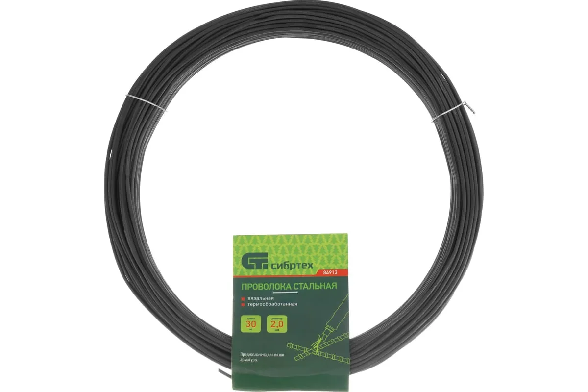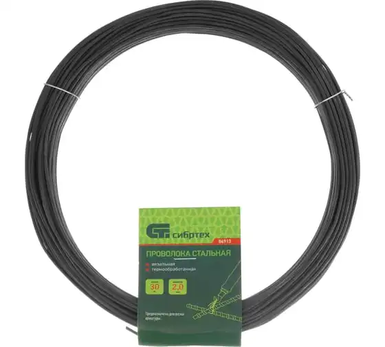 Стальная проволока Сибртех 84913 длиной 30 м и диаметром 2,0 мм, термообработанная, используется в качестве строительного материала при возведении железобетонных конструкций. Пригодится для вязки арматуры и решения хозяйственных нужд.
