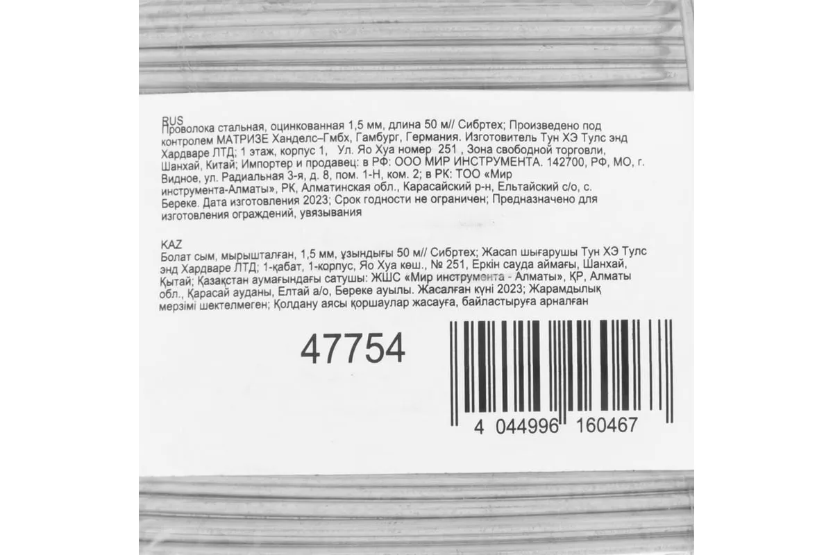 Стальная оцинкованная проволока Сибртех 47754 диаметром 1,5 мм и длиной 50 м используется для фиксации и связывания грузов, создания растяжек. Пригодится во время такелажных работ, будет полезна для занятий рукоделием и решения бытовых задач.