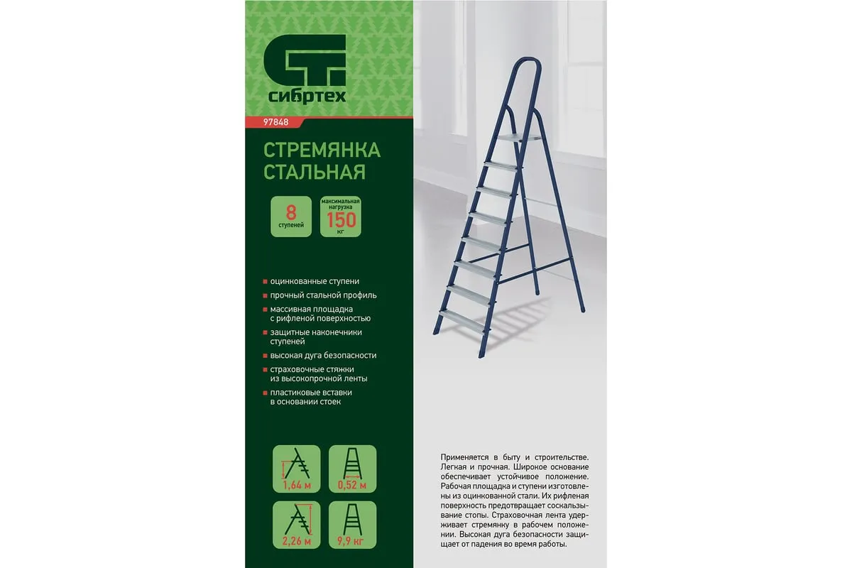 Стальная стремянка 8 ступеней СИБРТЕХ 97848 имеет площадку для удобства при работе. Изготовлена из стального профиля с эмалевым покрытием. Благодаря пластиковым наконечникам, стремянка устойчива на рабочей поверхности и не царапает пол. Предусмотрена дуга безопасности.
