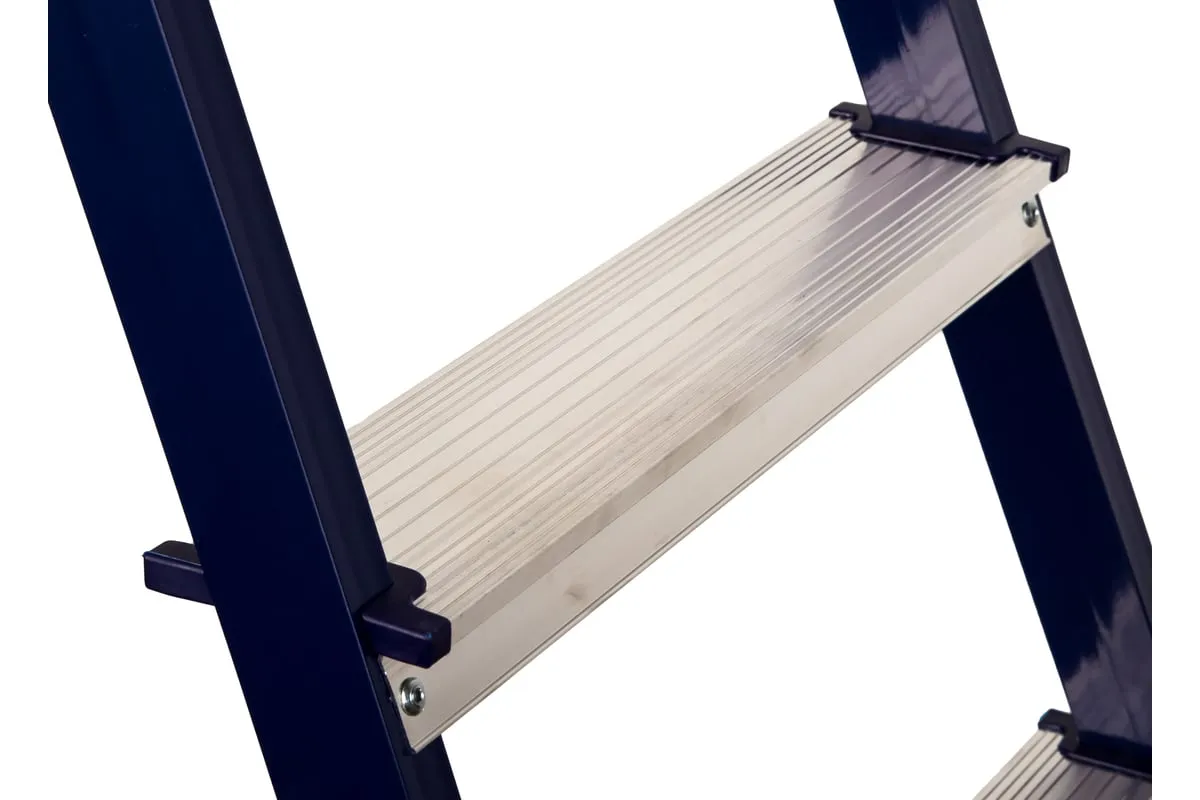 Ступени изготовлены из высокопрочного алюминиевого сплава (ГОСТ 22233-2018), имеют рифленую противоскользящую поверхность, что способствует безопасному подъёму и спуску. Прочное крепление ступеней к боковинам заклёпками придаёт конструкции высокую устойчивость.