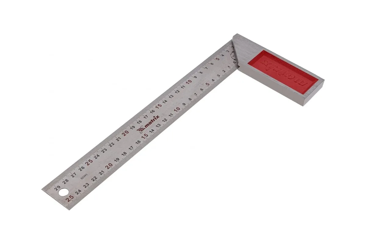 Стальной угольник Matrix 32391 длиной 300 мм, с градуировкой, — измерительный инструмент для построения и контроля углов. Будет полезен для проведения столярных и строительных работ.