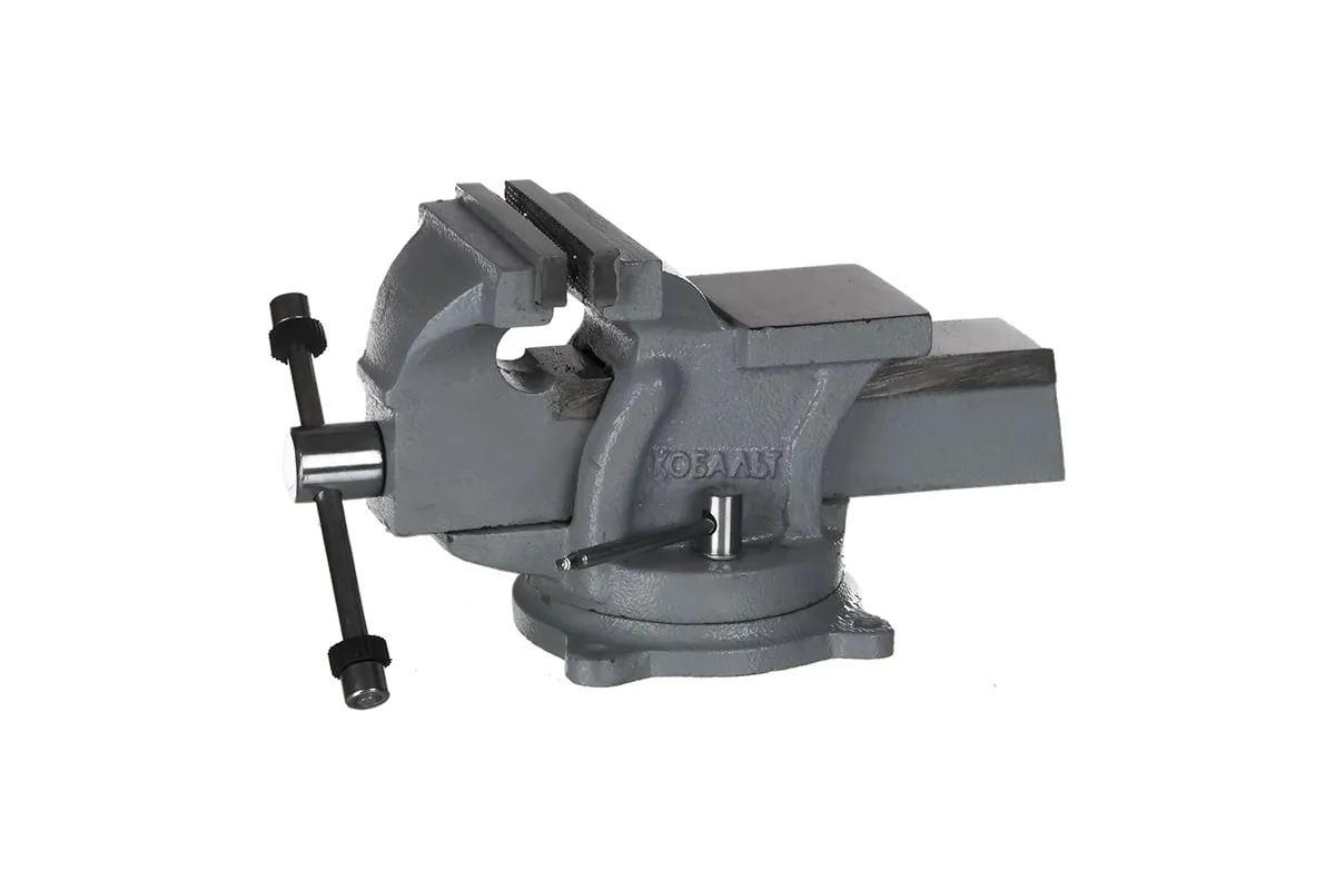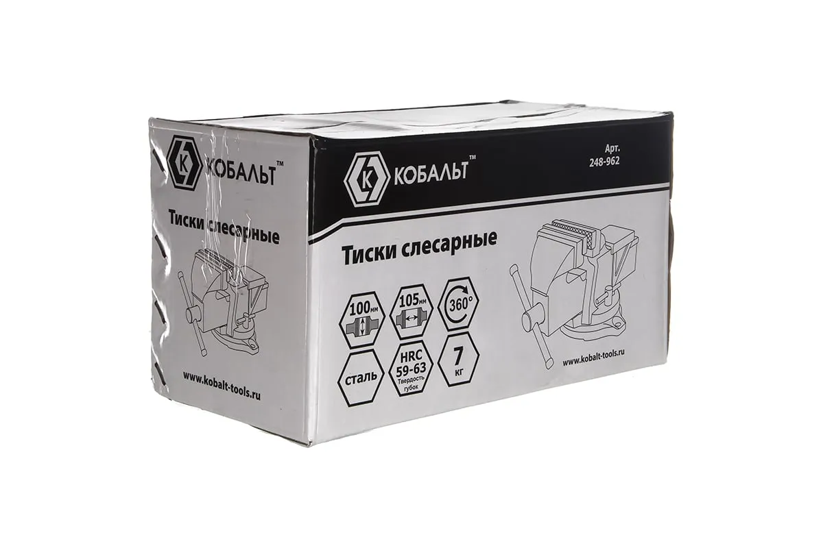 Стальные поворотные слесарные тиски КОБАЛЬТ 248-962 надежный в работе зажимной инструмент. Конструктивной особенностью модели является корпус с возможностью поворота на 360 градусов. Модель изготавливается из устойчивой к износу стали. Твердость губок - HRC 59-63.