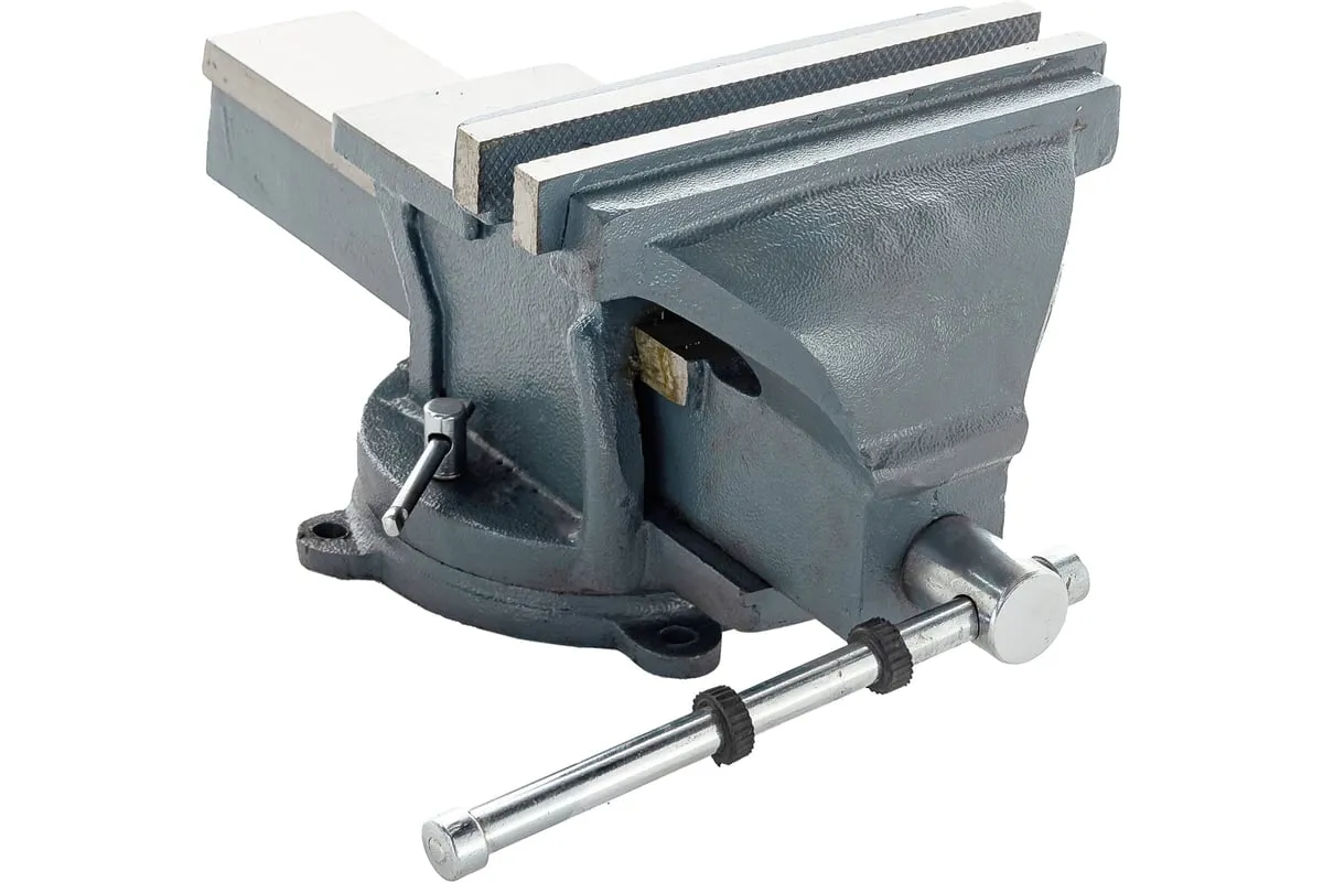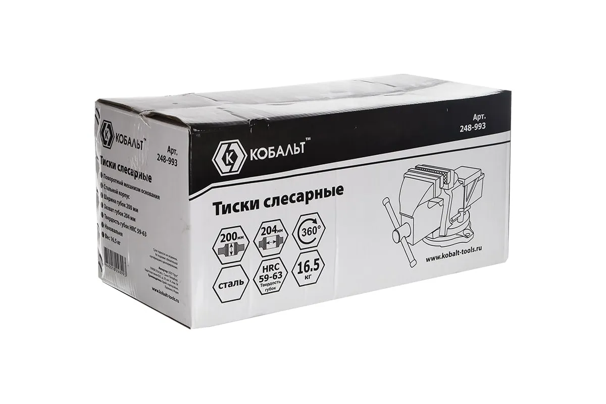 Стальные поворотные слесарные тиски КОБАЛЬТ 248-993 - надежный в работе зажимной инструмент. Устройство широко применяется в слесарных мастерских для обработки заготовок. Модель отличается высокой прочностью и устойчивостью к износу. Твердость губок - HRC 59-63.