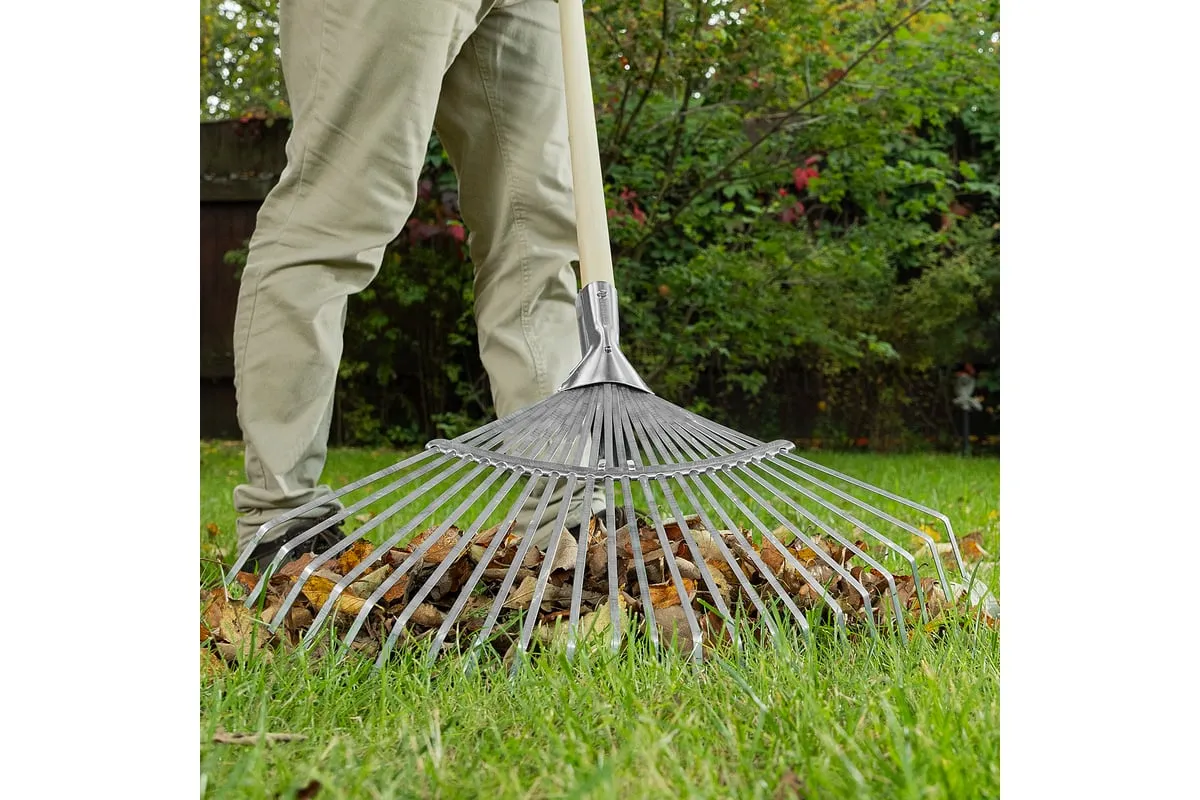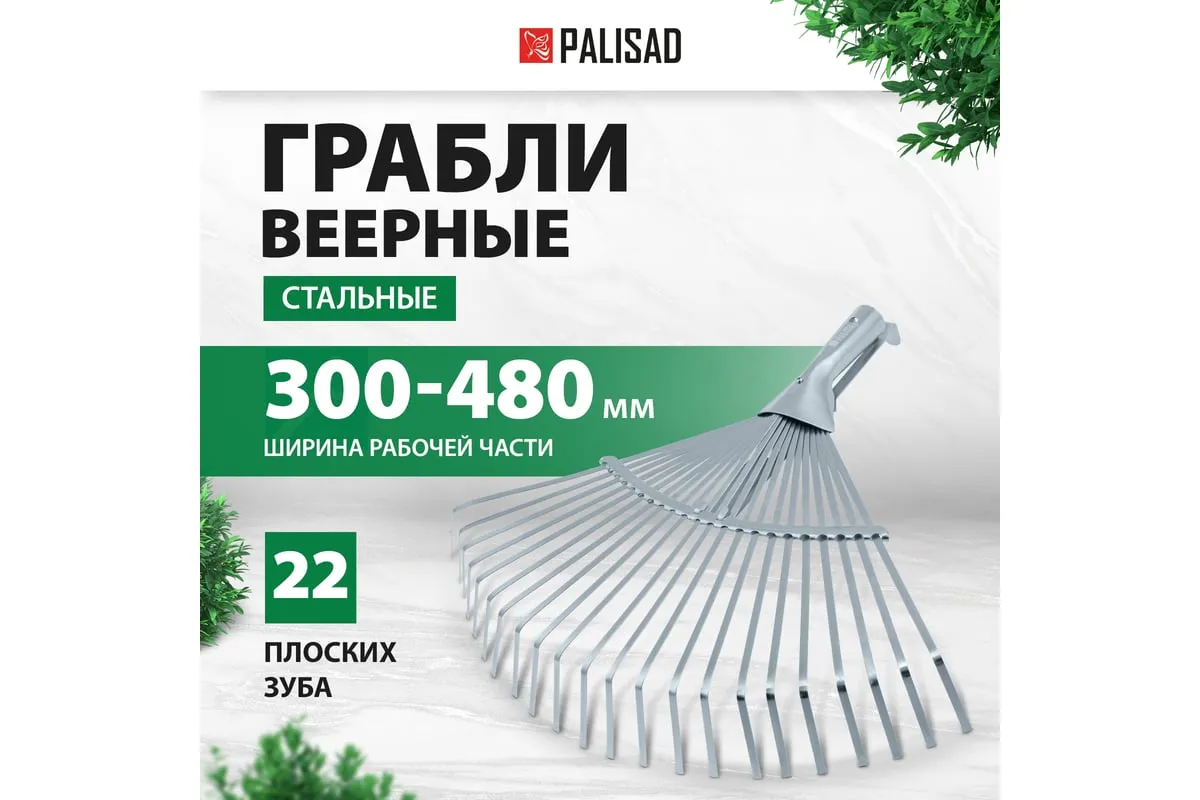 Стальные веерные грабли PALISAD 300-480 мм, 22 плоских зуба 617675 – незаменимый помощник на садовом и огородном участке. Используется для сбора опавшей листвы и прочего мусора на газонах, грядках и т.д. Ширина рабочей части регулируется в диапазоне от 30 см до 48 см, что позволяет подобрать наиболее оптимальную для выполнения различных задач. Грабли рекомендуется использовать совместно с черенками диаметром 2.5 см.