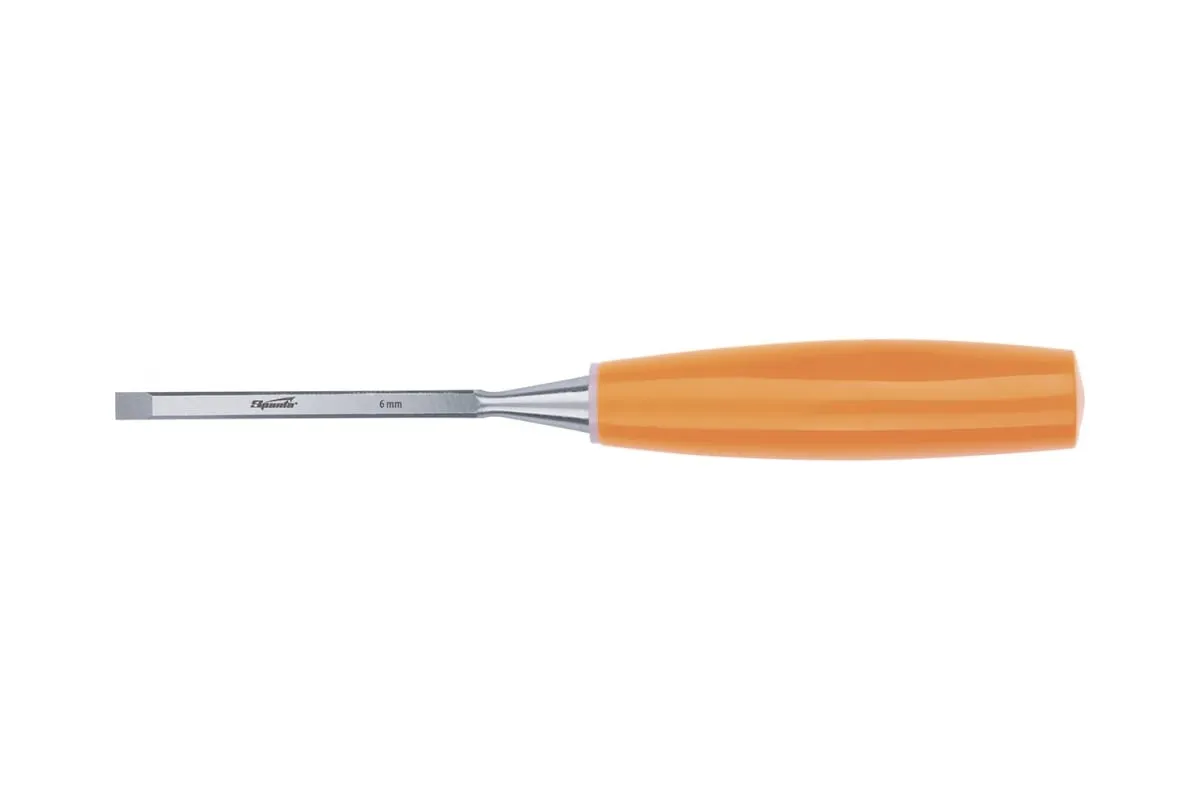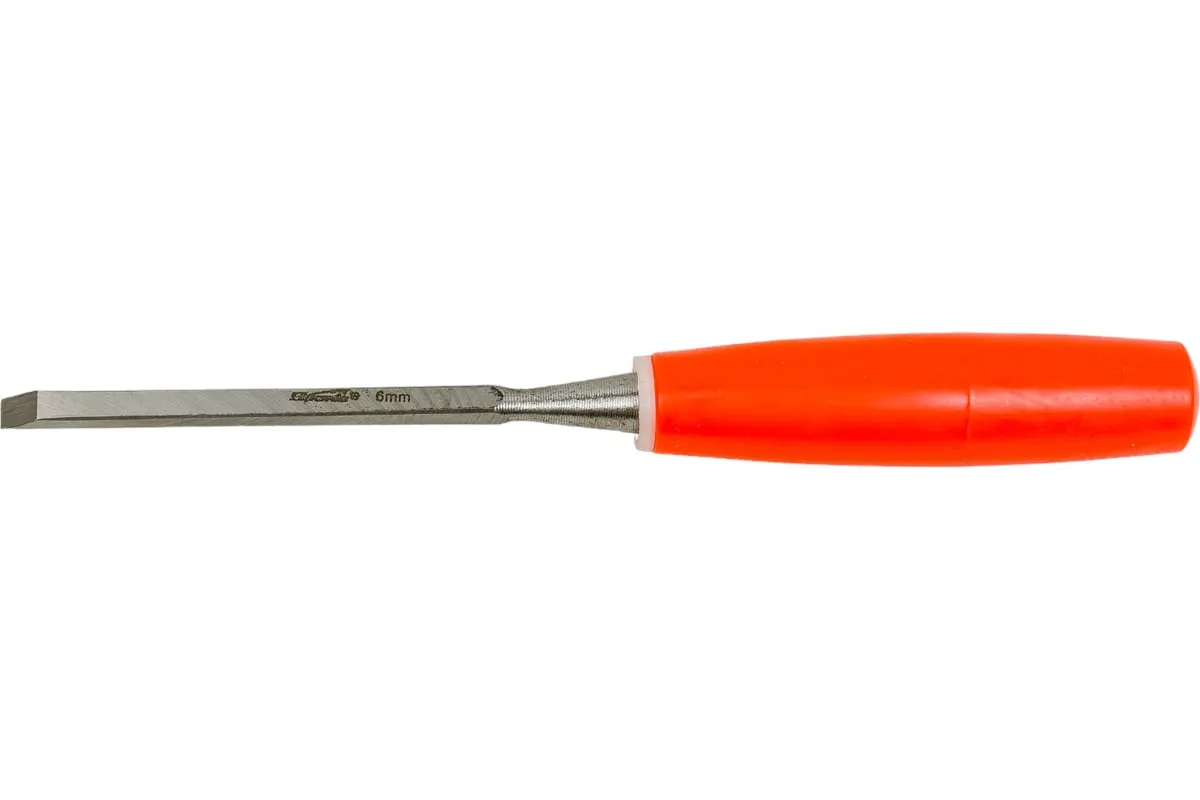 Плоская стамеска 6 мм SPARTA 244055 - это прочный ручной инструмент, предназначенный для выполнения вырезов, небольших выемок, а также подгонки отверстий в заготовках из древесины. Инструмент обладает удобной ручкой из практичного материала - ударопрочной пластмассы.