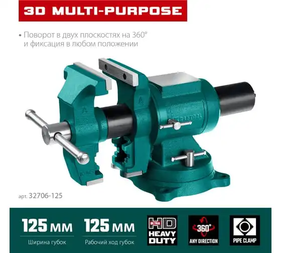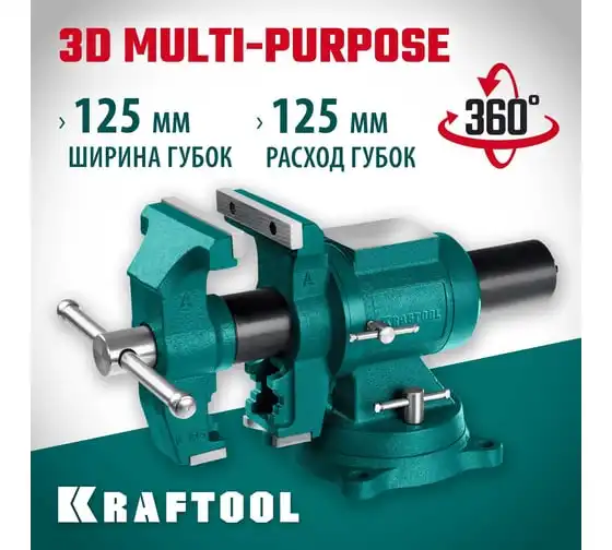 Чугунные слесарные тиски KRAFTOOL 3D Multi-Purpose 125 мм 32706-125