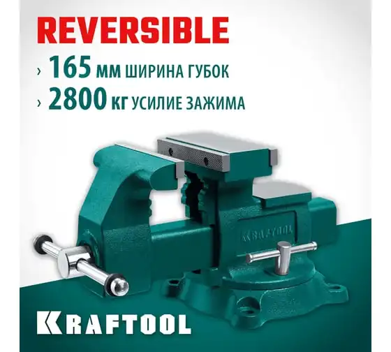 Слесарные тиски KRAFTOOL Reversible 165 мм, расход 324 мм 32705-165