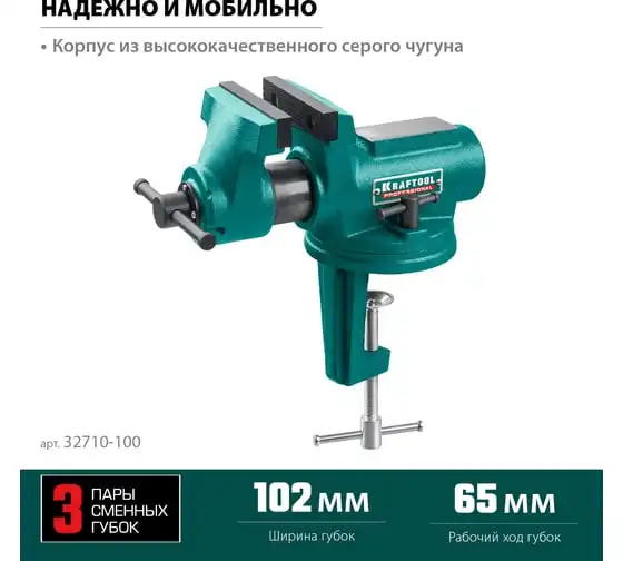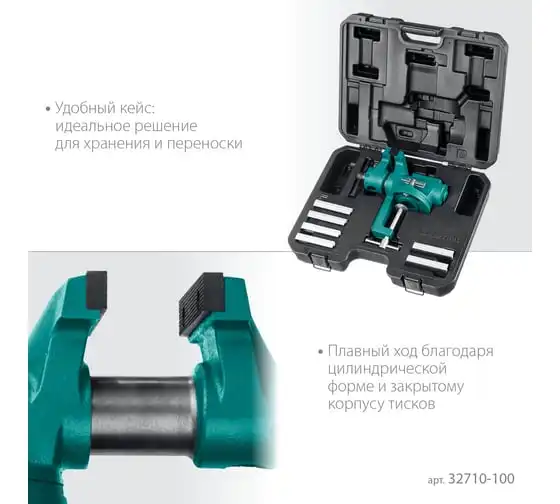 Универсальные мобильные тиски для точных работ KRAFTOOL 100 мм, в кейсе Expert 32710-100