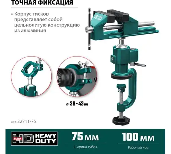 Шарнирно-поворотные тиски KRAFTOOL Precision 75 мм 32711-75