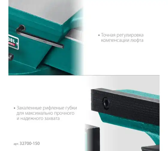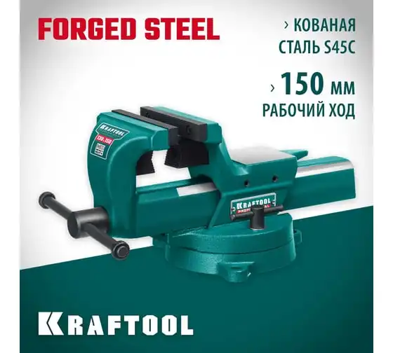 Кованые стальные тиски с регулировкой компенсации люфта KRAFTOOL Forge-130/150 32700-150