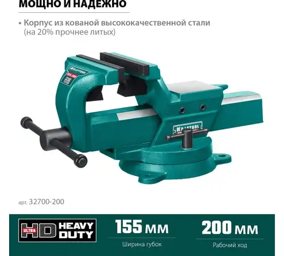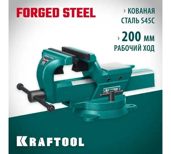 Кованые стальные тиски KRAFTOOL Forge-155/200 32700-200