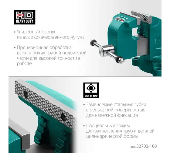 Слесарные тиски KRAFTOOL Grand 100 мм 32702-100