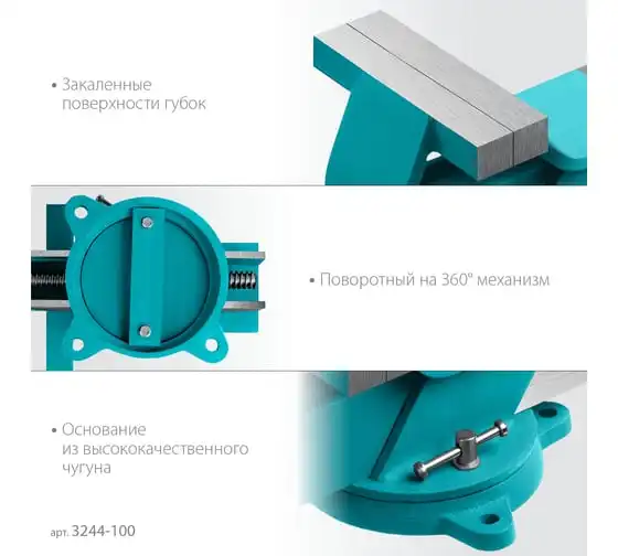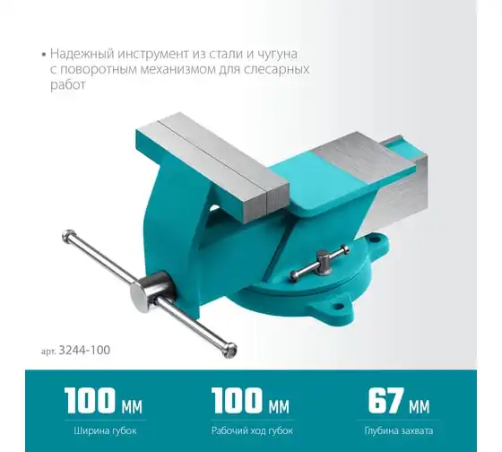 Стальные слесарные тиски СИБИН 100 мм 3244-100