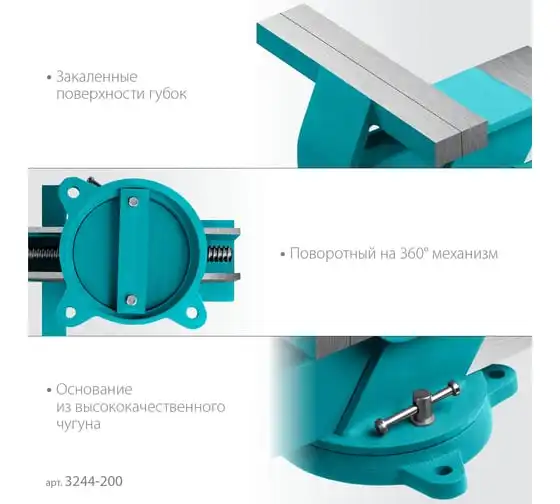 Стальные слесарные тиски СИБИН 200 мм 3244-200