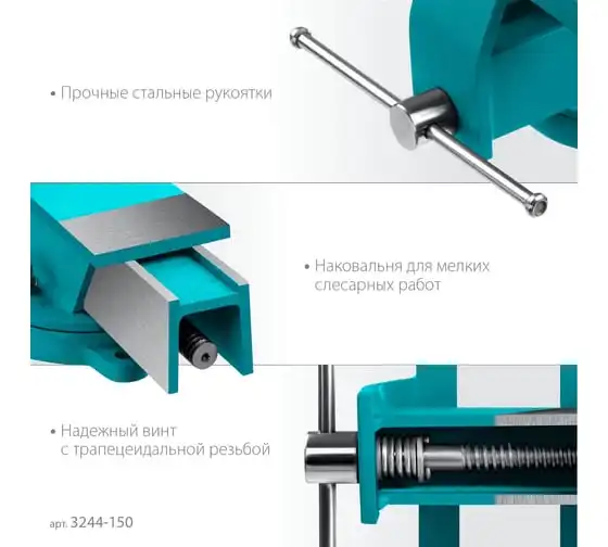 Стальные слесарные тиски СИБИН 150 мм 3244-150