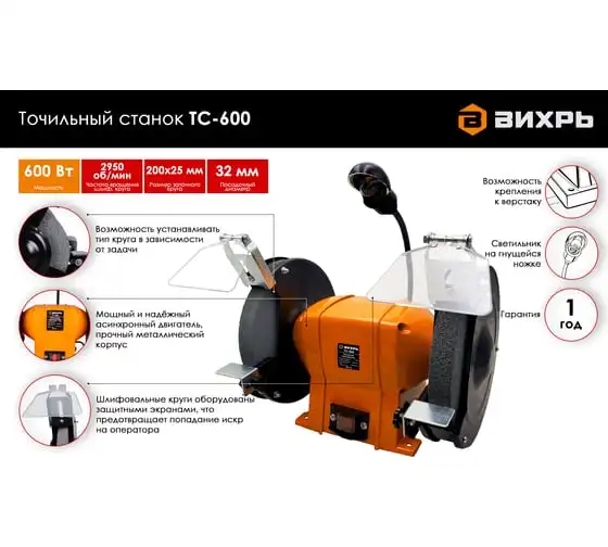 Точильный станок Вихрь ТС-600 72/7/4