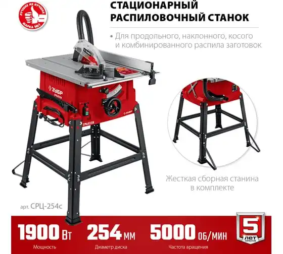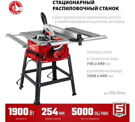 Настольный распиловочный станок ЗУБР 1900 Вт СРЦ-254