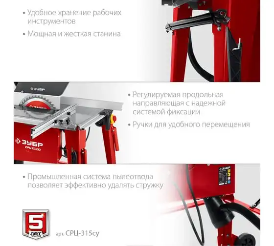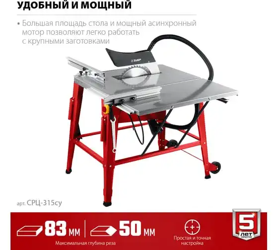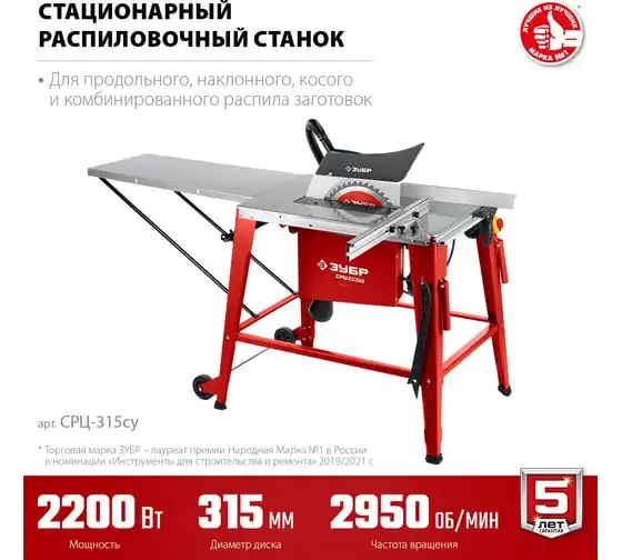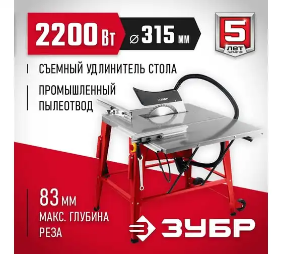 Напольный распиловочный станок ЗУБР со станиной и удлинителем, 2200 Вт СРЦ-315су