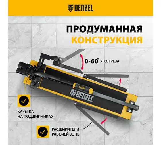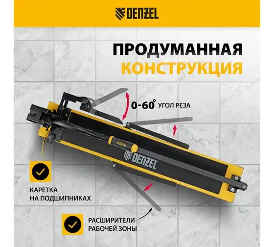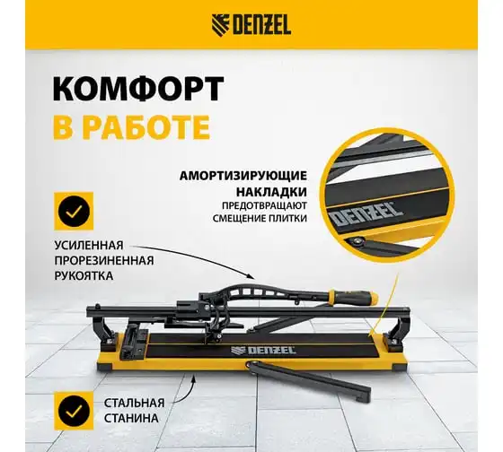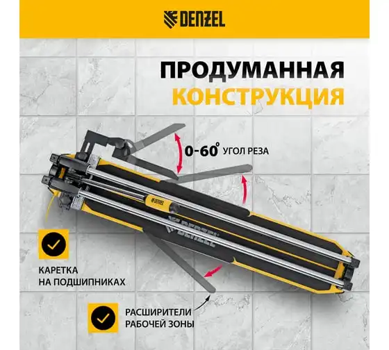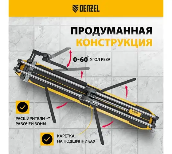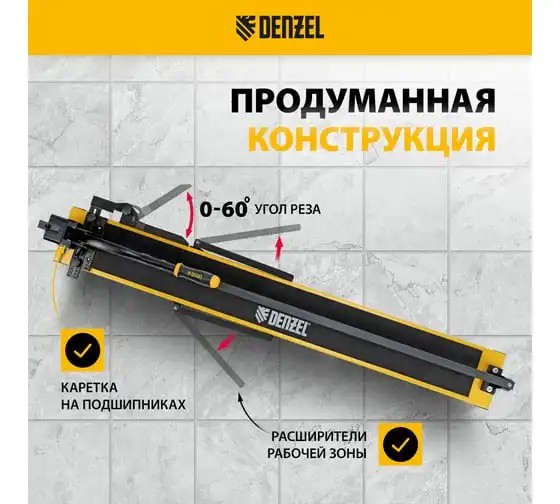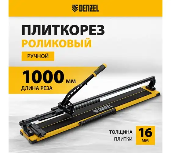 Плиткорез Denzel 1000x14 мм, цельнометаллическая направляющая, каретка на подшипнике, стальная станина, рукоятка-пенал 877012