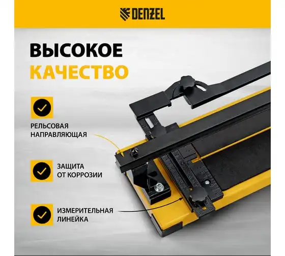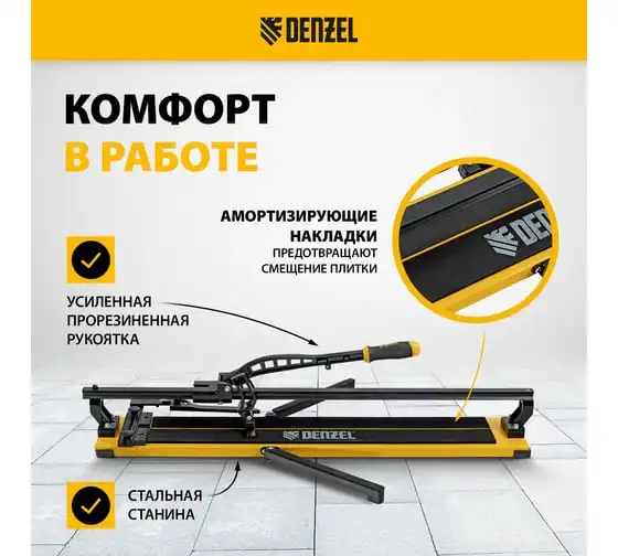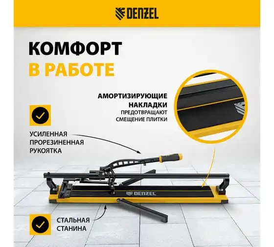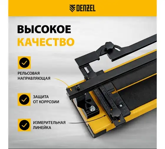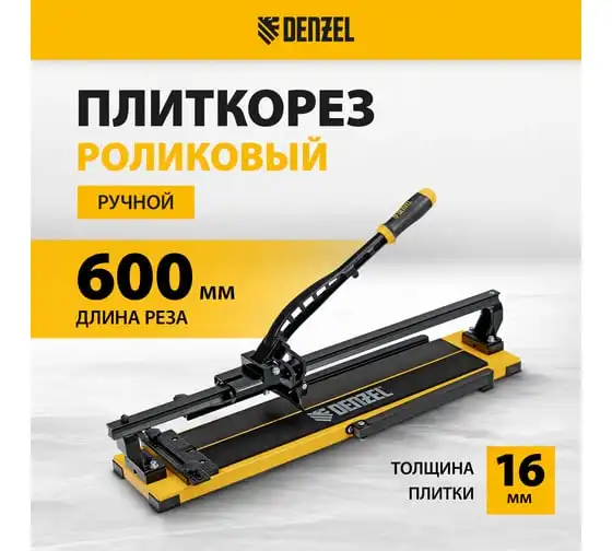 Плиткорез рельсовый Denzel 600x16мм, каретка на подшипнике, стальная станина, усиленная рукоятка-пенал 877014