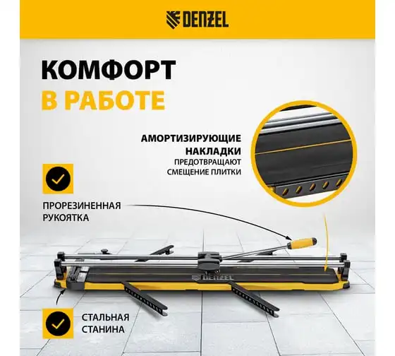 Плиткорез рельсовый Denzel 1000x16мм, каретка на подшипнике, стальная станина, усиленная рукоятка-пенал 877018