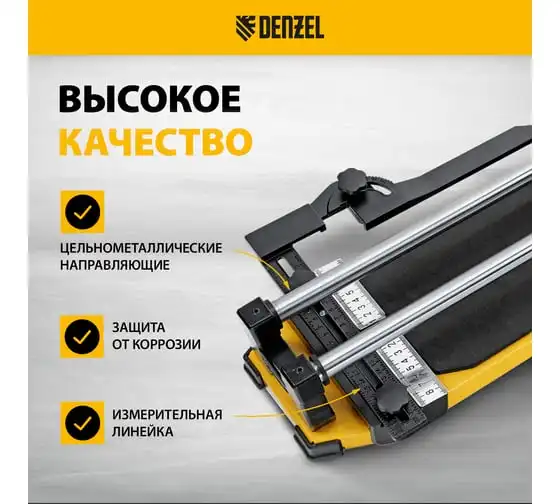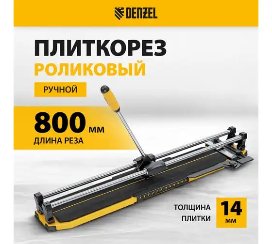 Плиткорез Denzel 800x14 мм, цельнометаллическая направляющая, каретка на подшипнике, стальная станина, рукоятка-пенал 877010