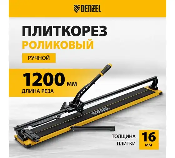 Плиткорез рельсовый Denzel 1200x16мм, каретка на подшипнике, стальная станина, усиленная рукоятка-пенал 877020