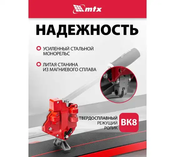 Плиткорез ручной MTX 800х14 мм, каретка на подшипниках, усиленная рук-ка, облегченная алюминиевая станина 87583