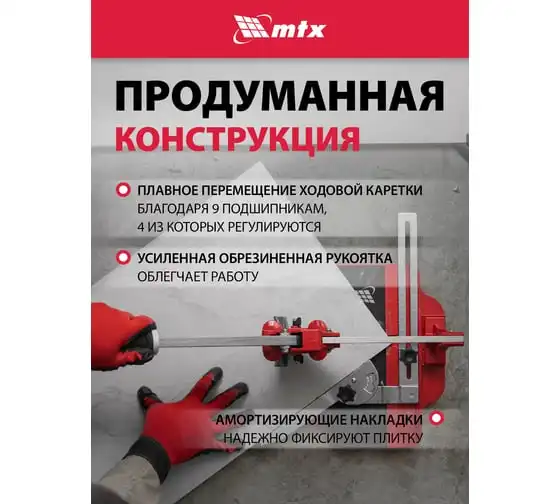 Плиткорез MTX 400x16 мм, литая станина, направляющая с подшипником, усиленная ручка 87605