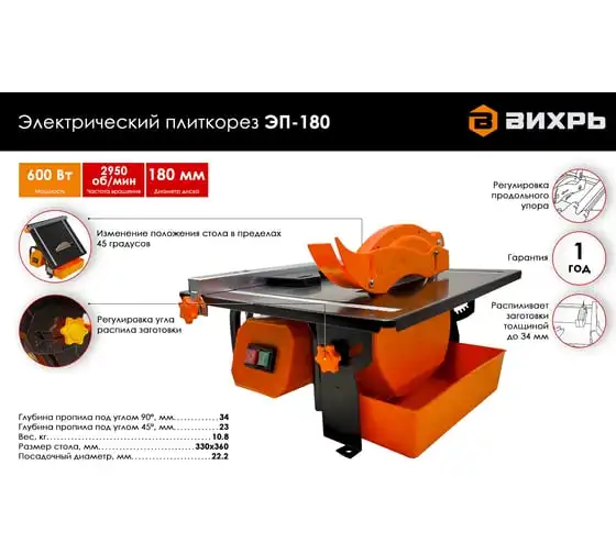 Электрический плиткорез Вихрь ЭП-180 72/22/1
