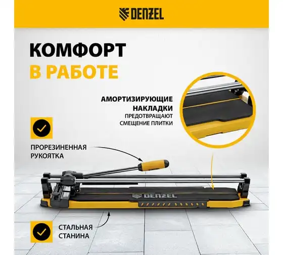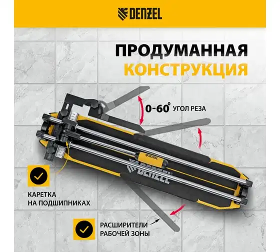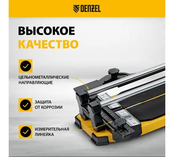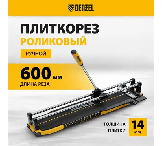 Плиткорез Denzel 600x14 мм, цельнометаллическая направляющая, каретка на подшипнике, стальная станина, рукоятка-пенал 877008