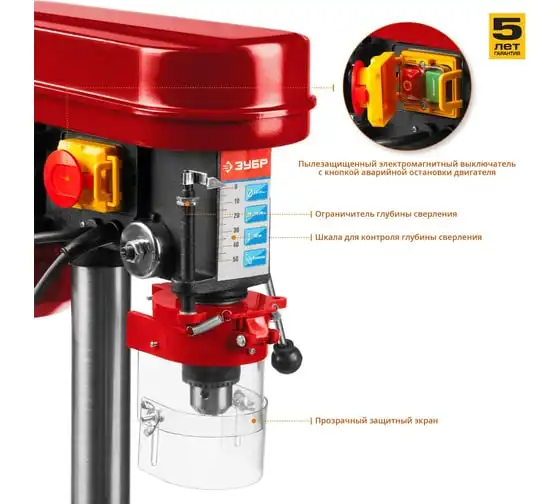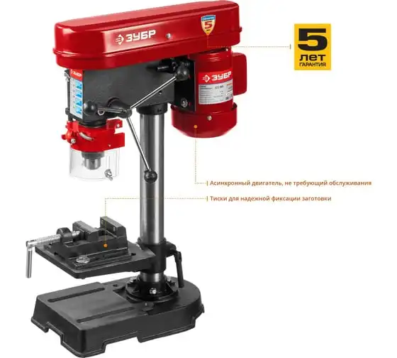 Сверлильный станок Зубр безопасный выключатель, 5 скоростей, патрон 13 мм, 350Вт ЗСС-350