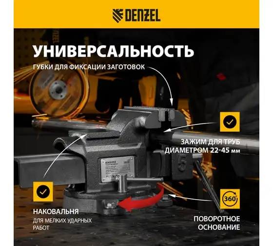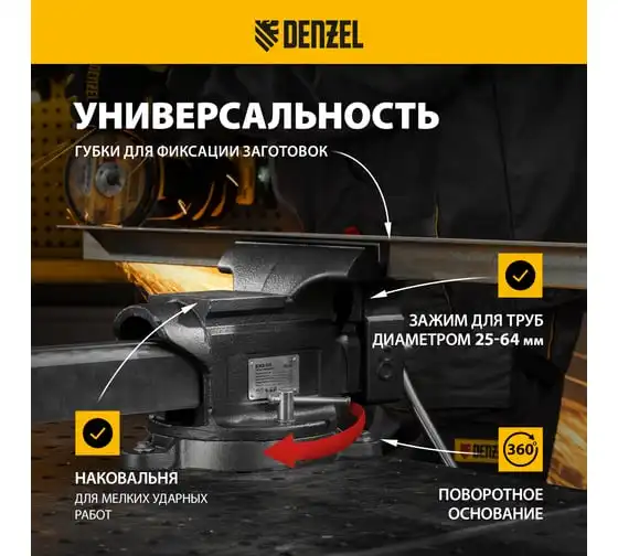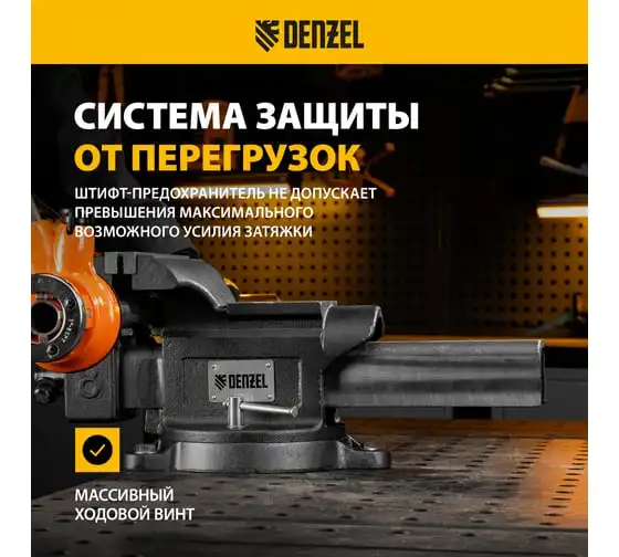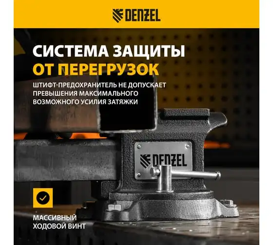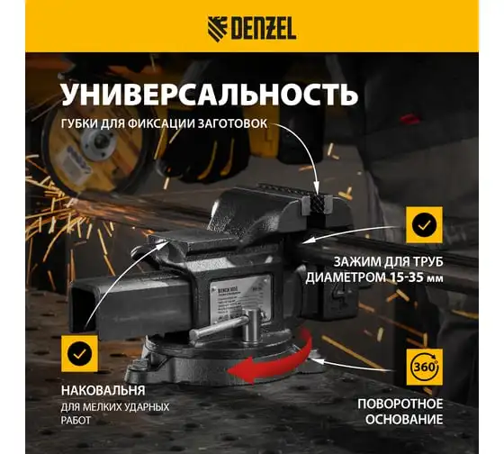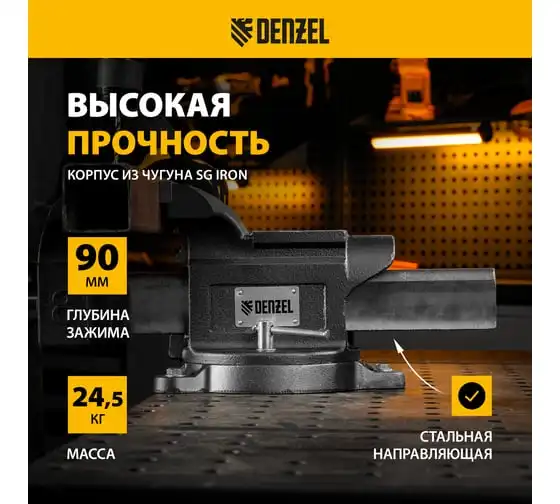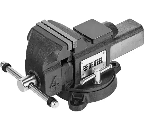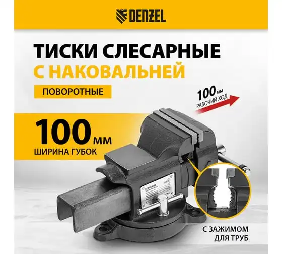 Тиски слесарные Denzel BVH-100, 100 мм, поворотные, стальная направляющая, с наковальней 18683